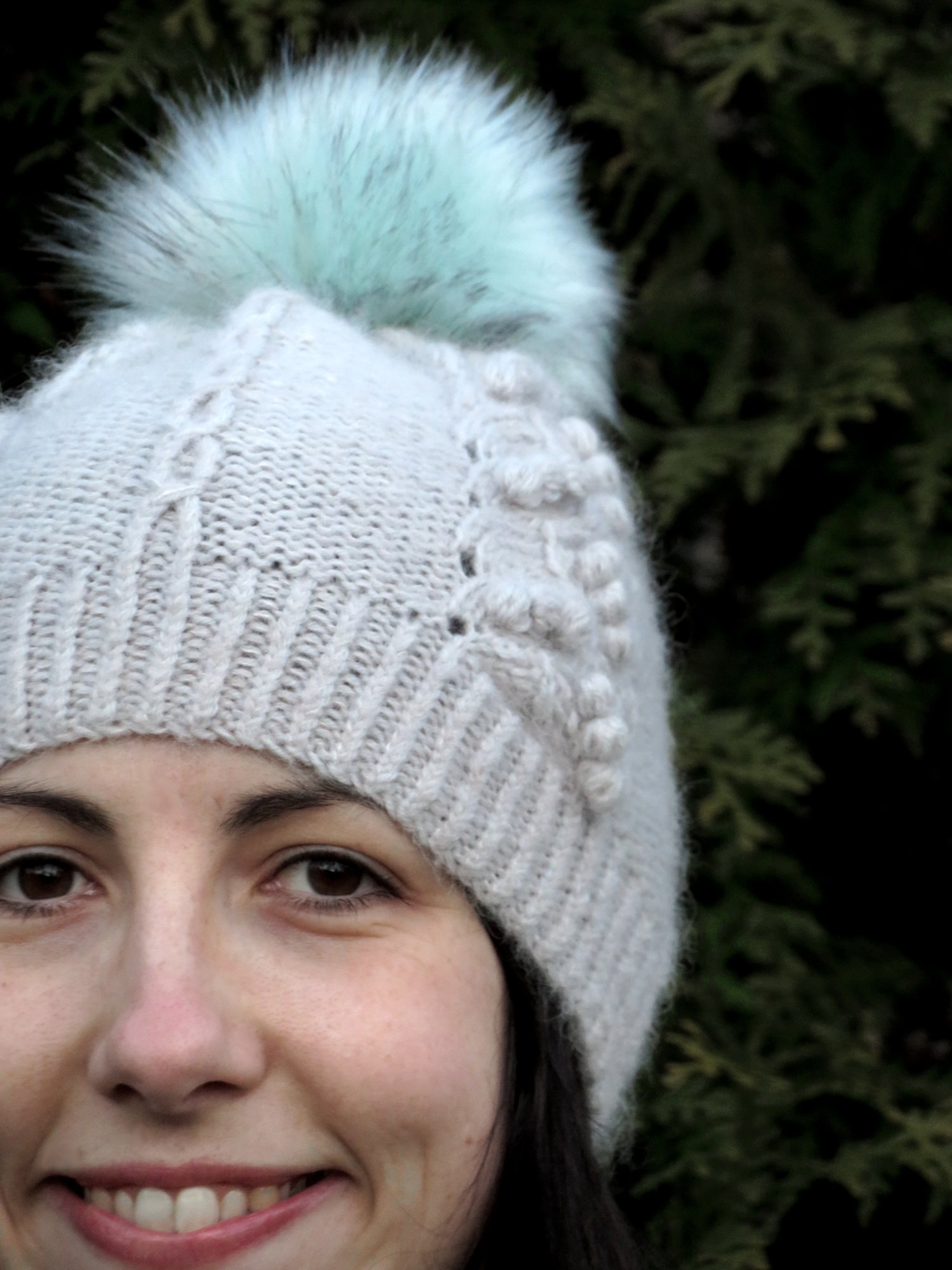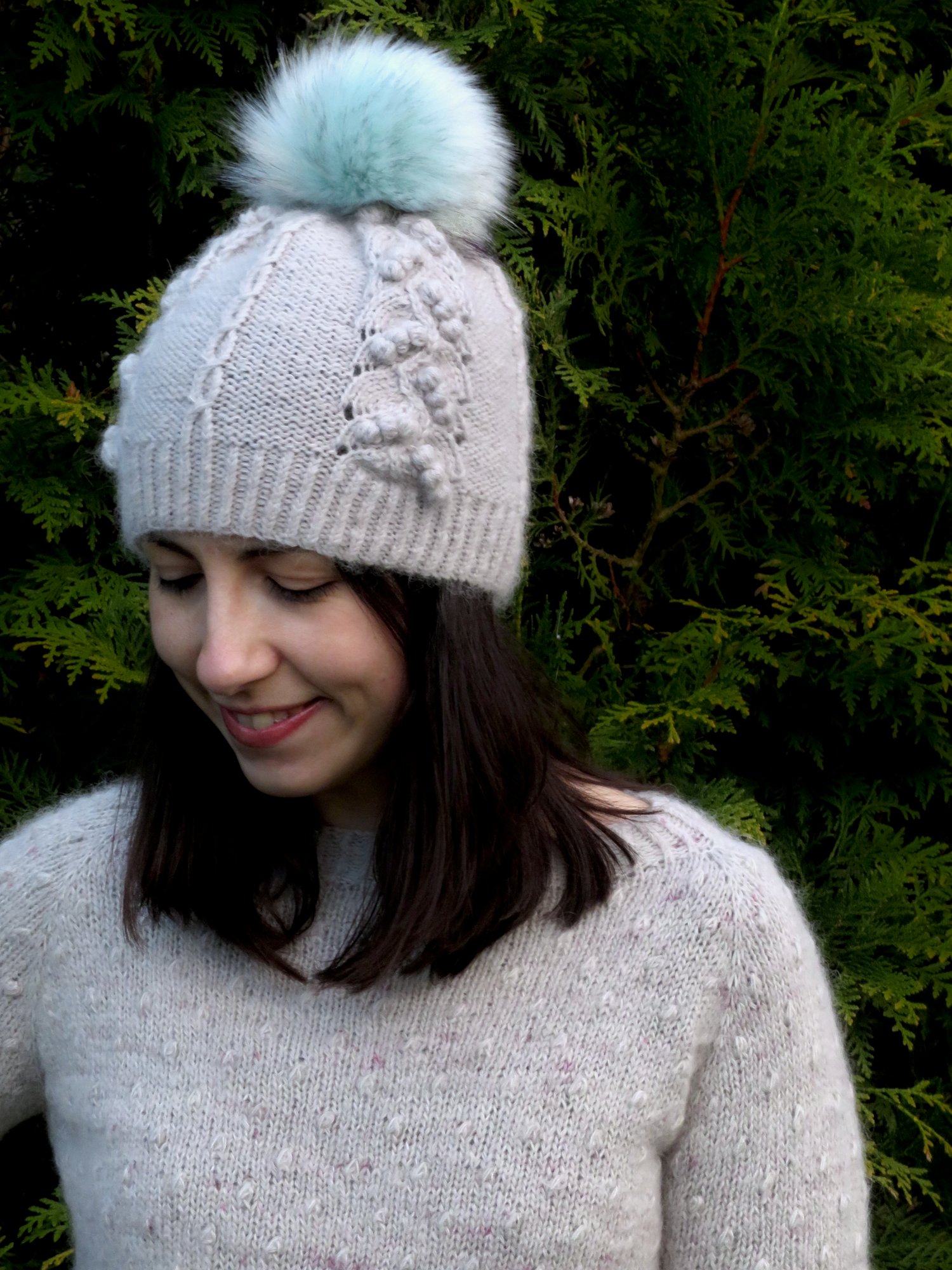 During the dark and gloomy winter months, the Moonberry Hat was born. An entwined collection of lace, bobbles and cables keep this a beautifully elegant addition to your handmade winter wardrobe, whilst keeping the knitting process interesting and addictive. There is a video tutorial included for creating the bobbles which are crocheted.
