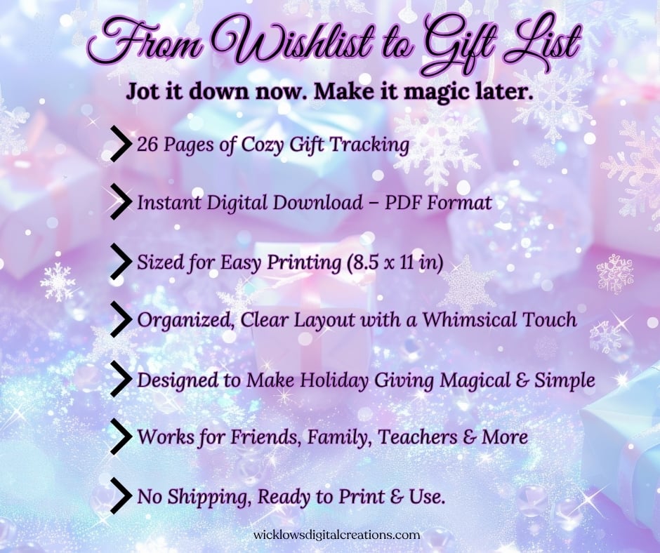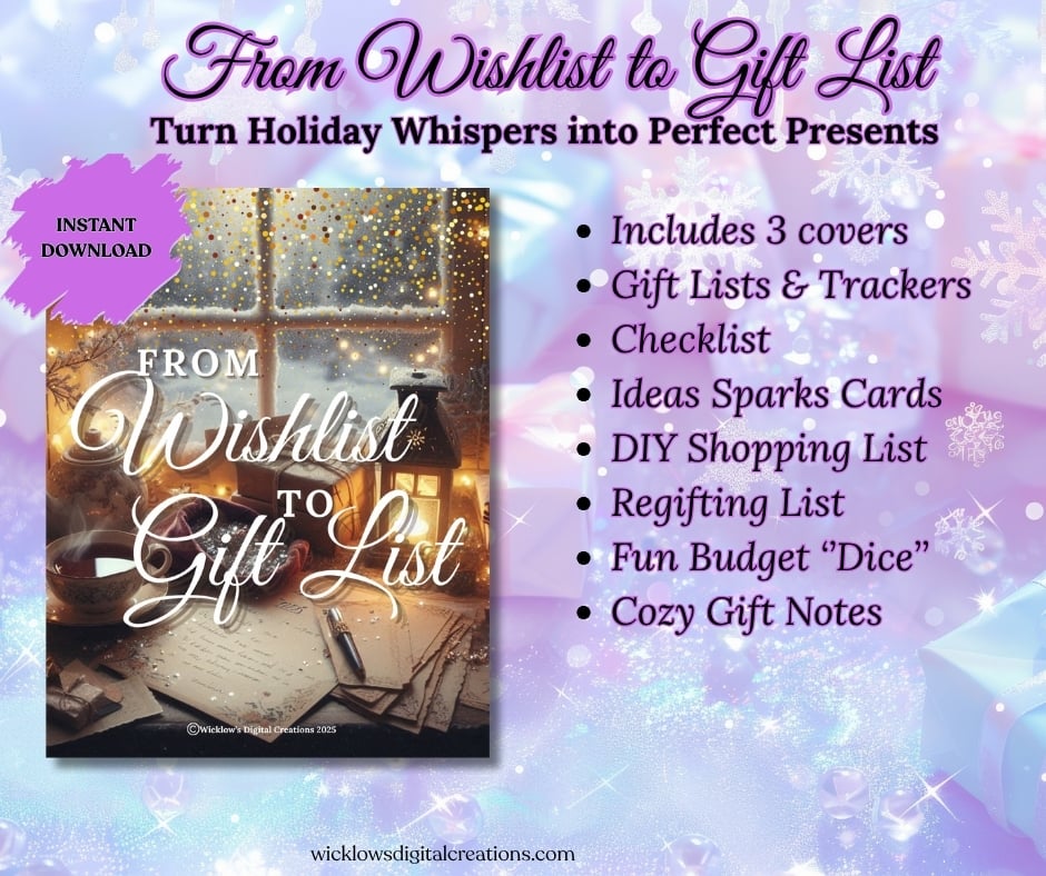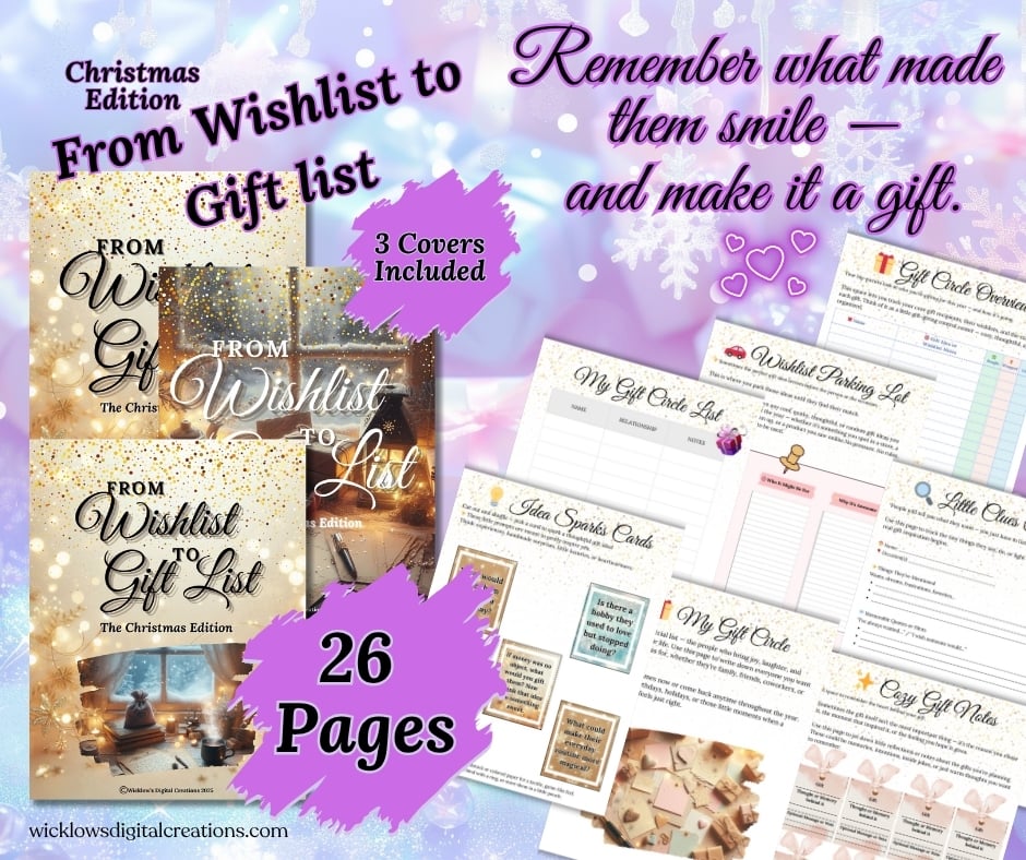 A cozy Christmas gifting journal to help you gather ideas all year long—from casual comments to heartfelt wishes. Includes thoughtful prompts, idea trackers, and planning pages. Give more meaningfully this holiday season.
