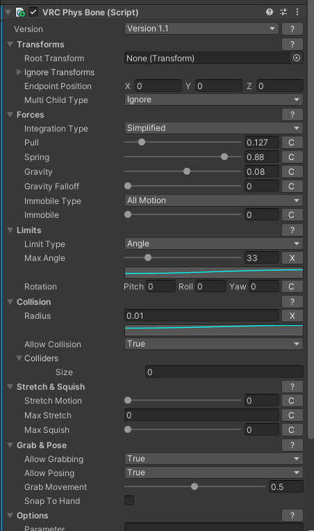 - The second image showcases the Phys bones setup that I used
