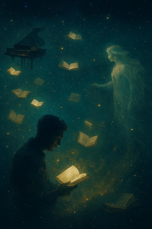 Este poema evoca un refugio imaginario donde el tiempo y la distancia desaparecen, permitiendo que el alma viaje libremente entre las letras y la imaginación.