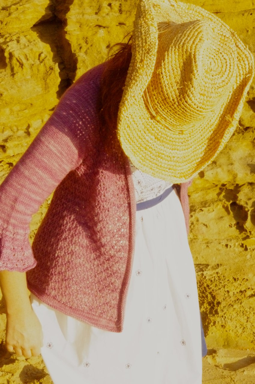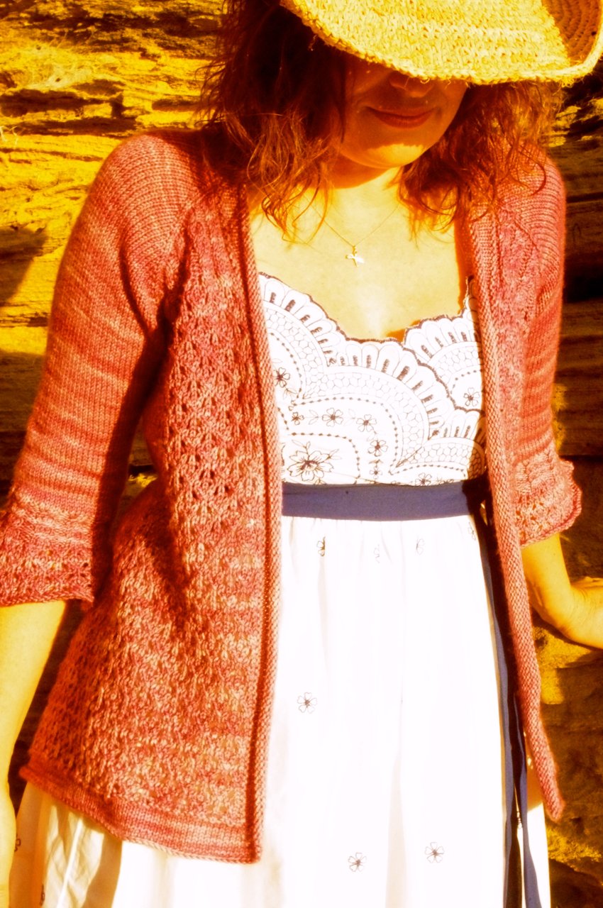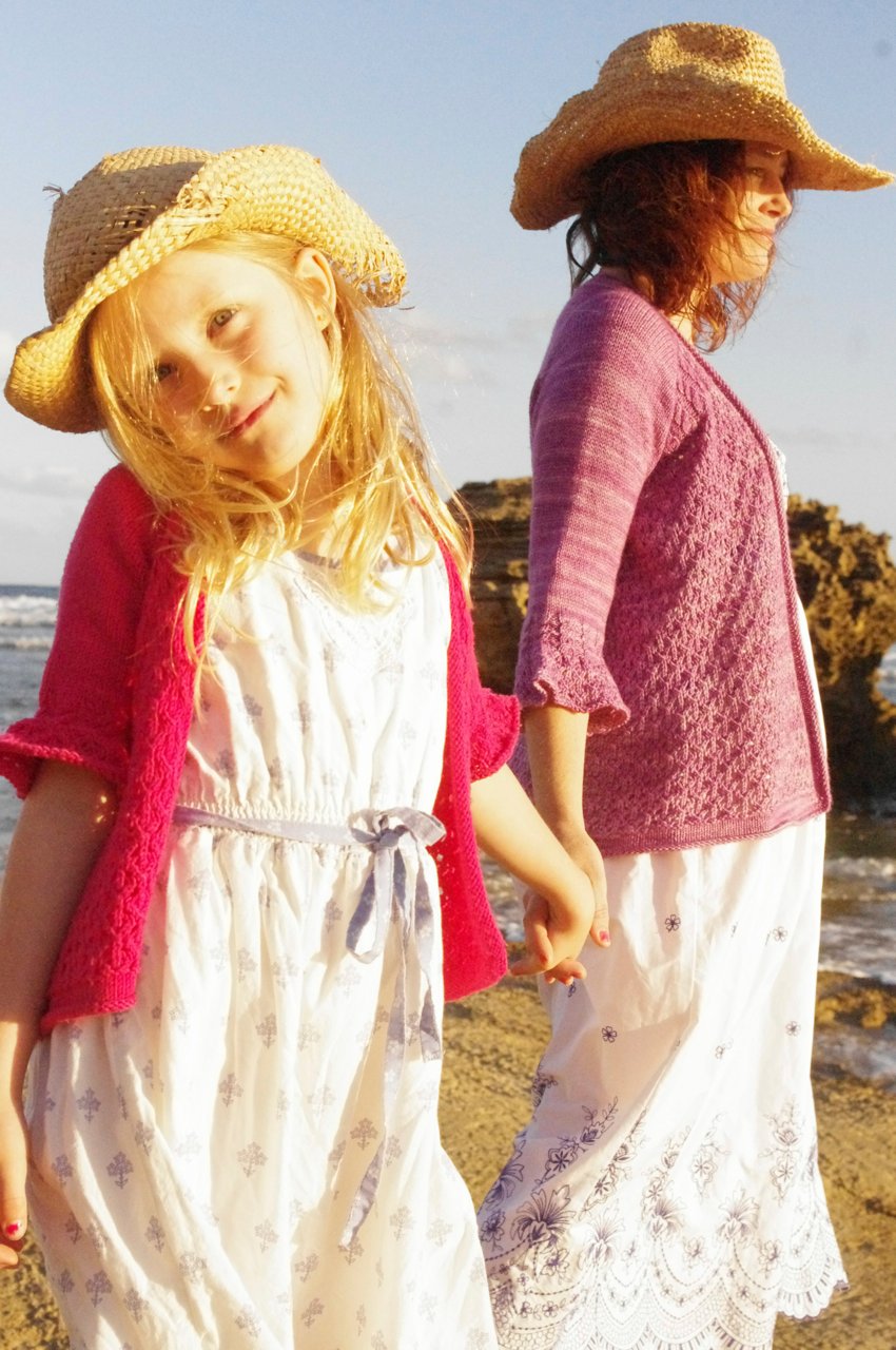 The perfect little Summer cardigan; open, lacy and lightweight. Lizzie knits up quickly and simply in beautiful lush 5 ply/sport weight yarns. This cardigan is simple and seamless with an interesting construction. Such a delightful garment is sure to become a well worn staple in the warmer months.
