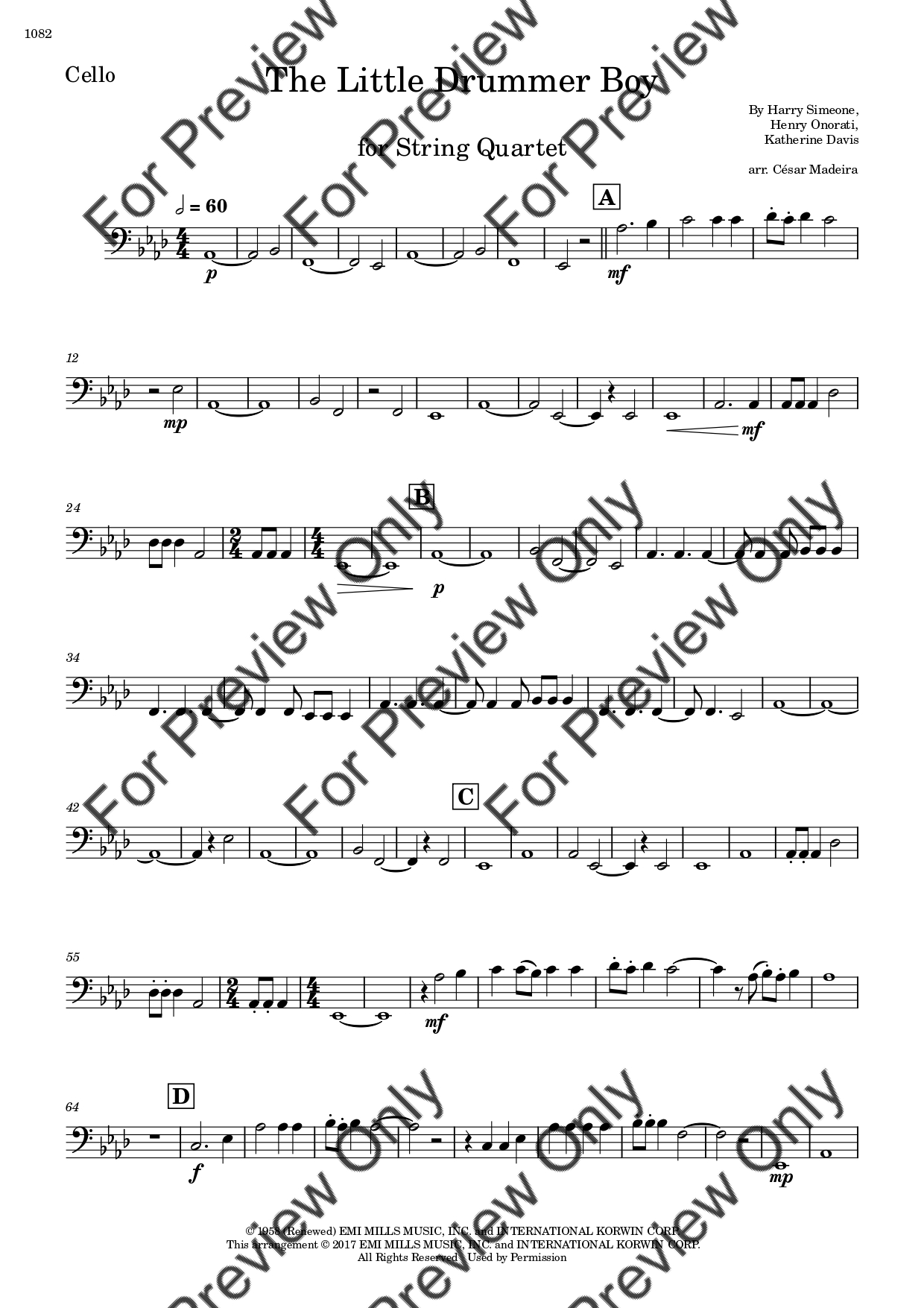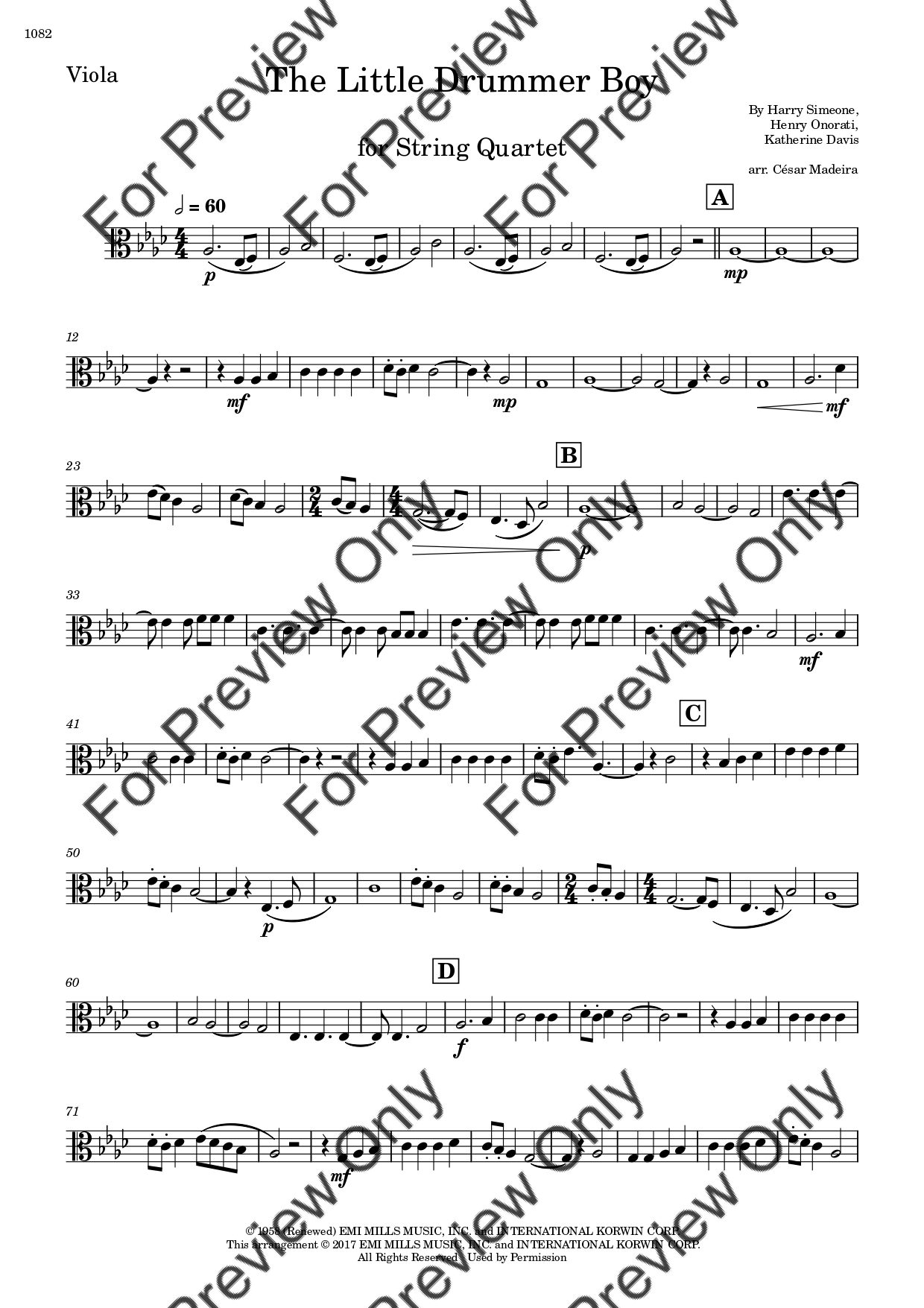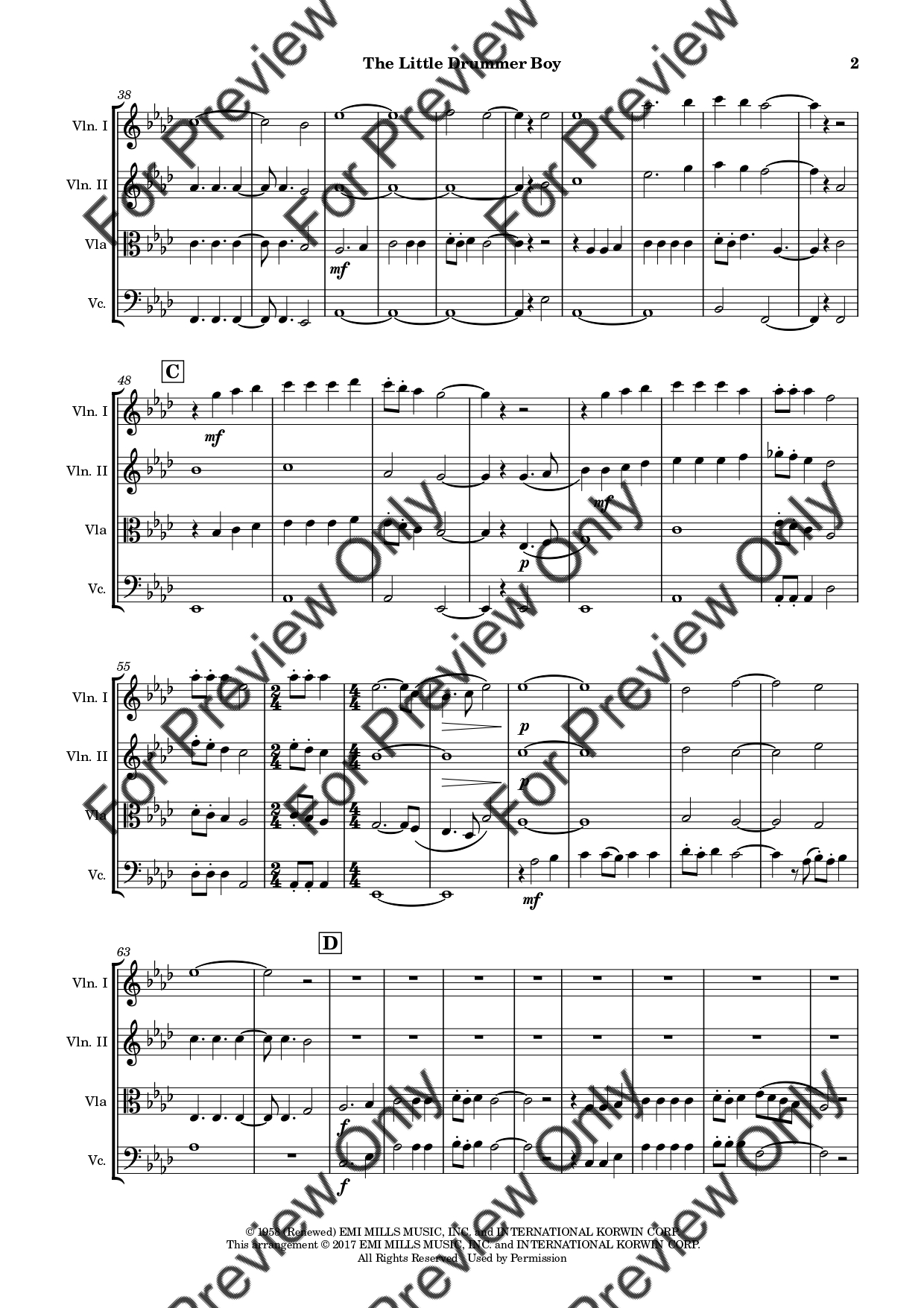 The Little Drummer Boy. Arrangement for String Quartet - Violin 1, 2, Viola and Violoncello. With Full Score and Individual Parts. Have fun!