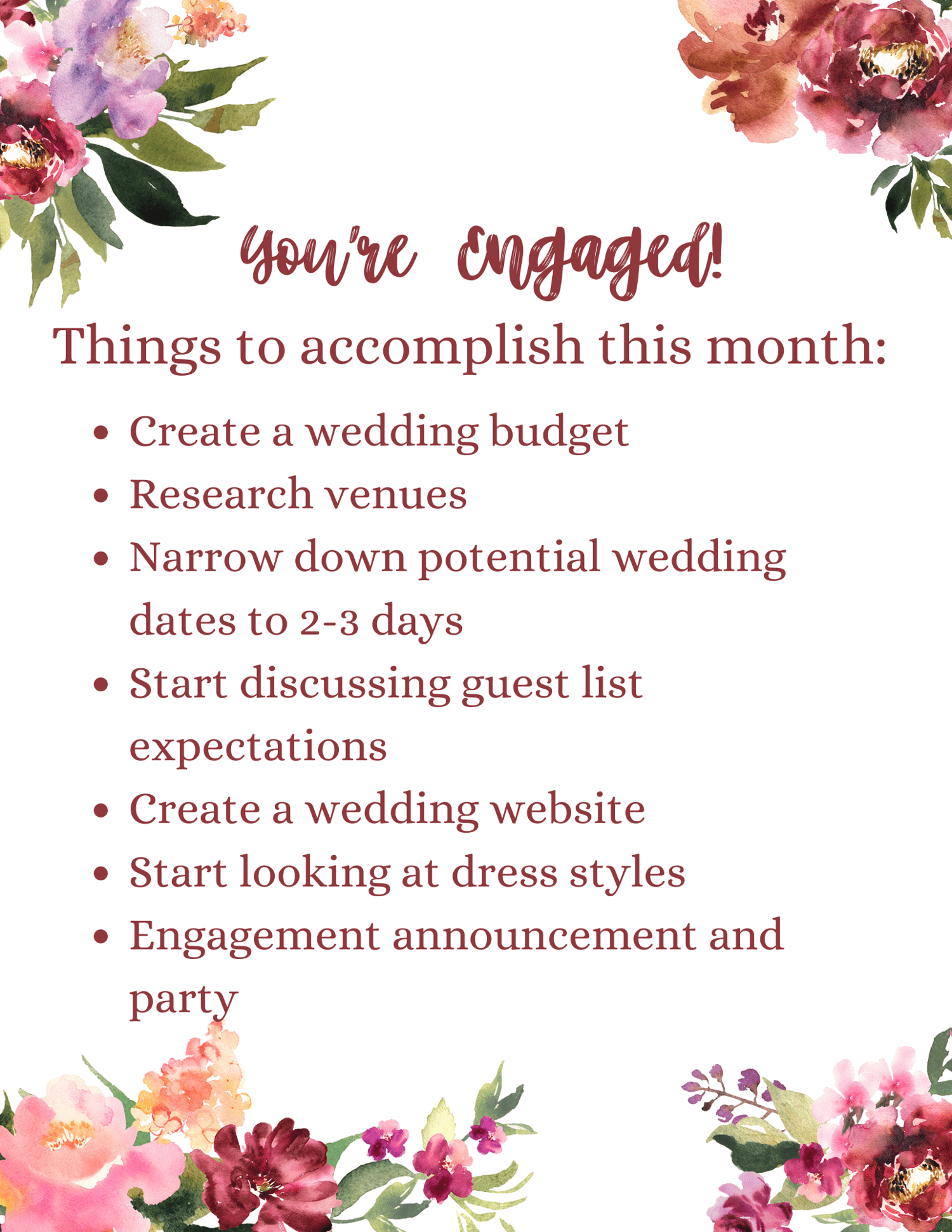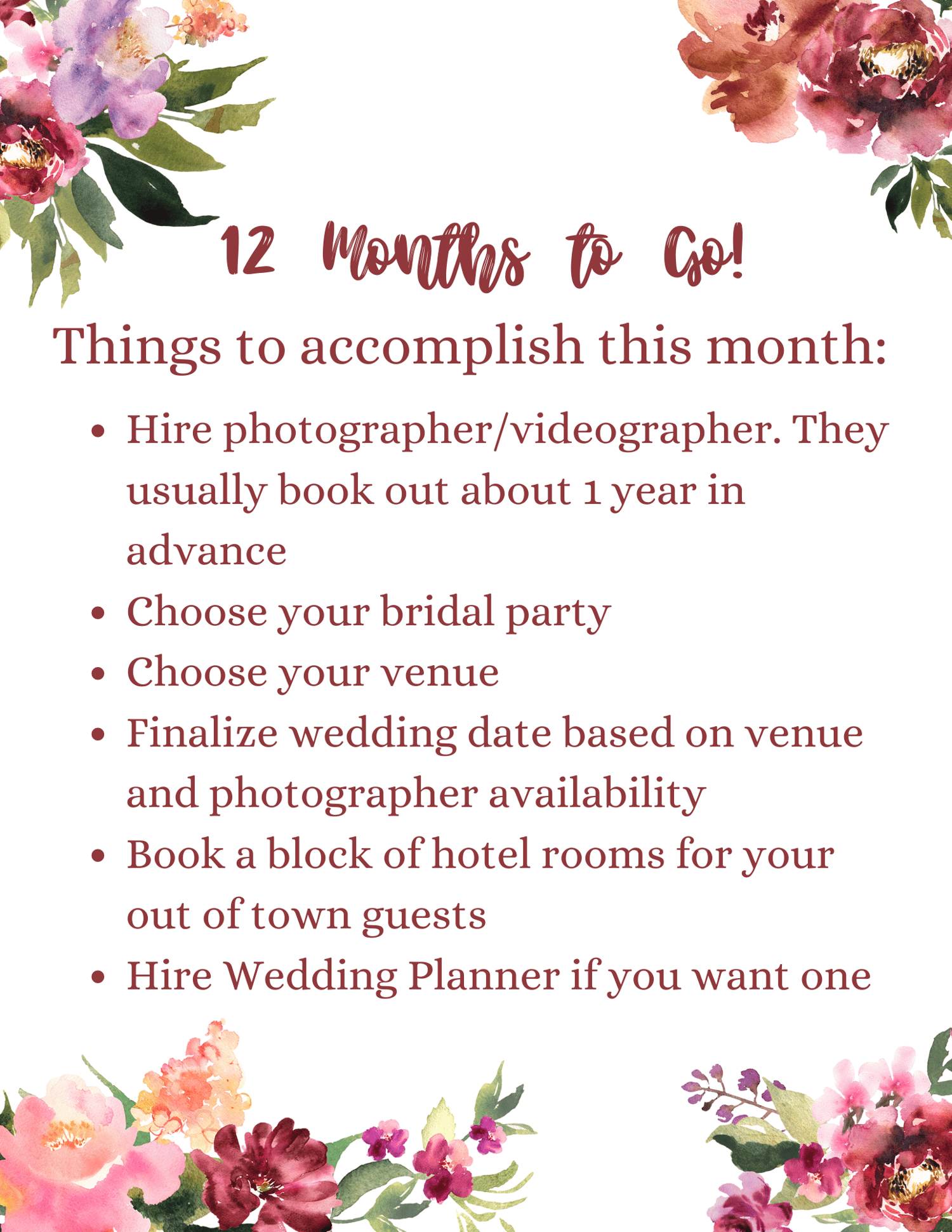 Plan your perfect wedding with this printable calendar! This download comes with 12 undated months and a checklist as you countdown to your wedding!
