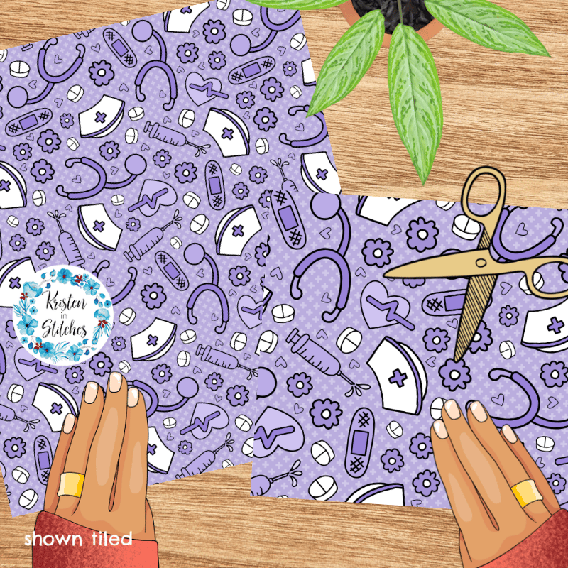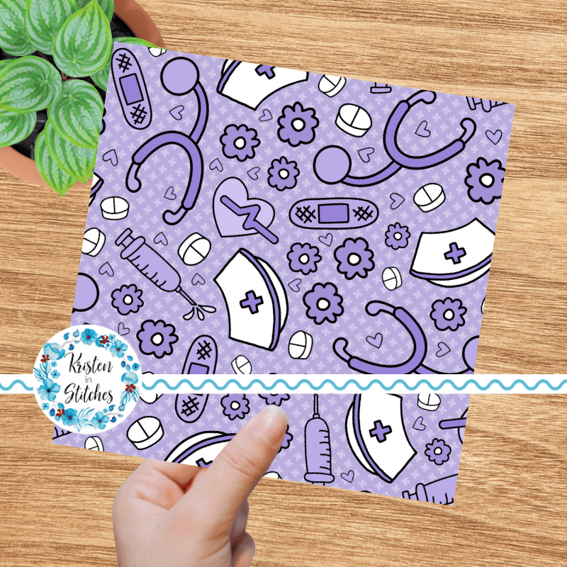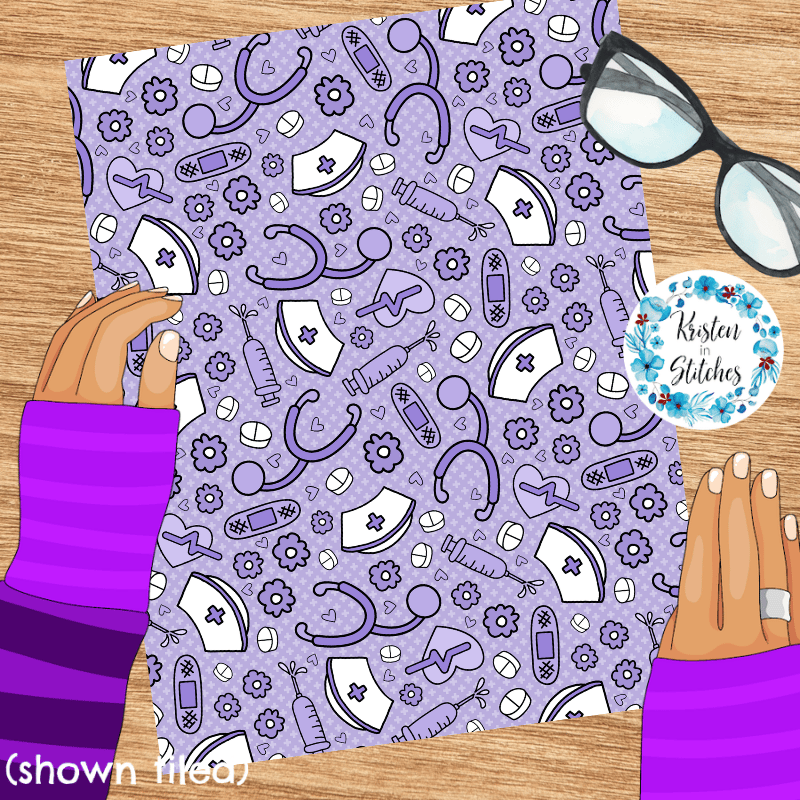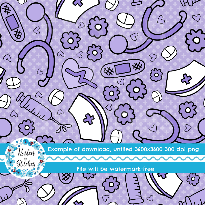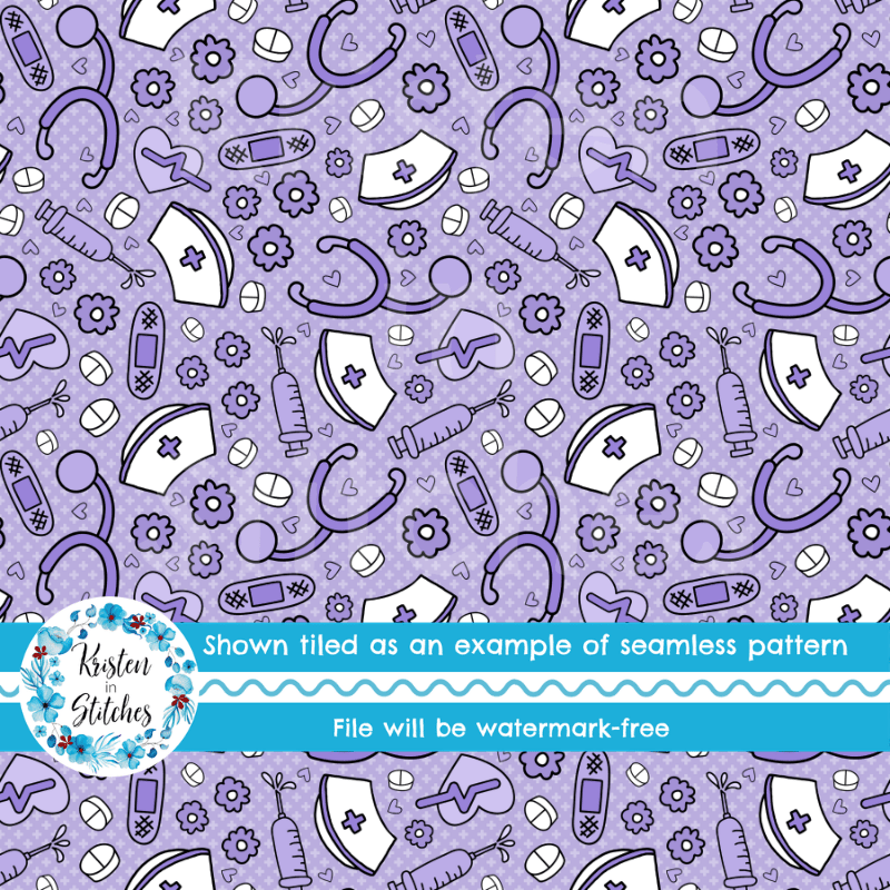 Love a Nurse Seamless Pattern, Medical Nursing Supplies, Purple