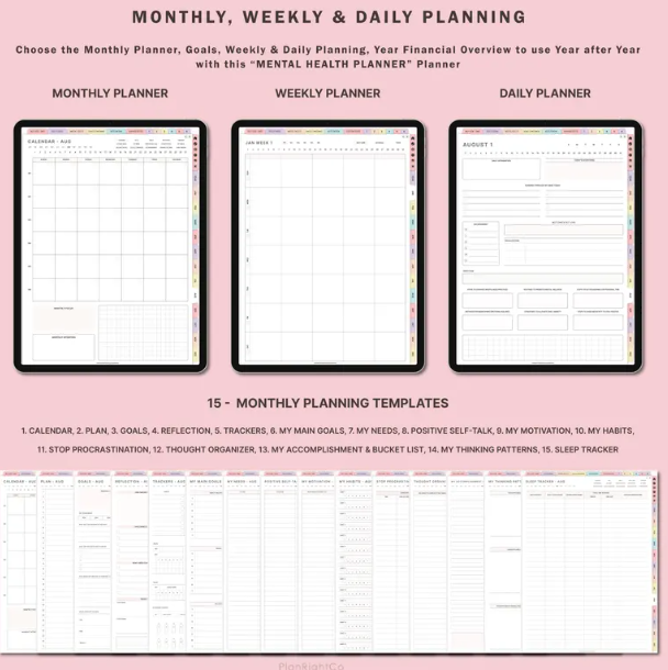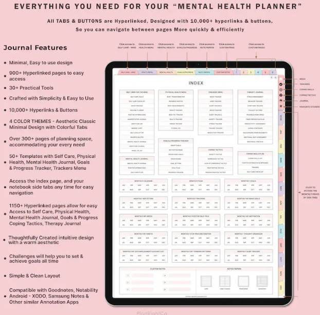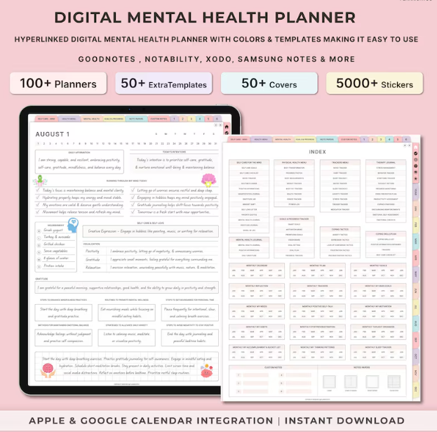 Take control of your mental well-being with our Digital Mental Health Planner, designed to support self-care, mindfulness, and emotional balance. Perfect for iPad, GoodNotes, and other digital platforms, this planner offers a structured yet flexible approach to tracking your mental health journey.