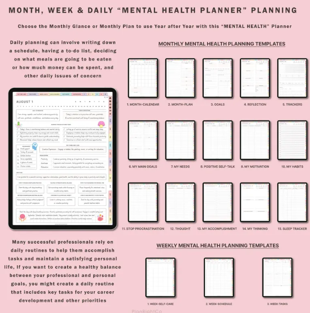 • Self-Care Planner – Schedule self-care activities and build healthy routines