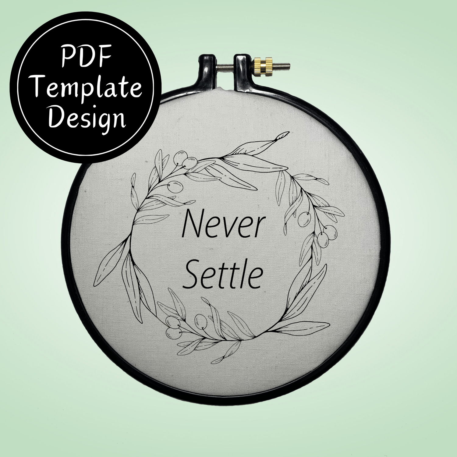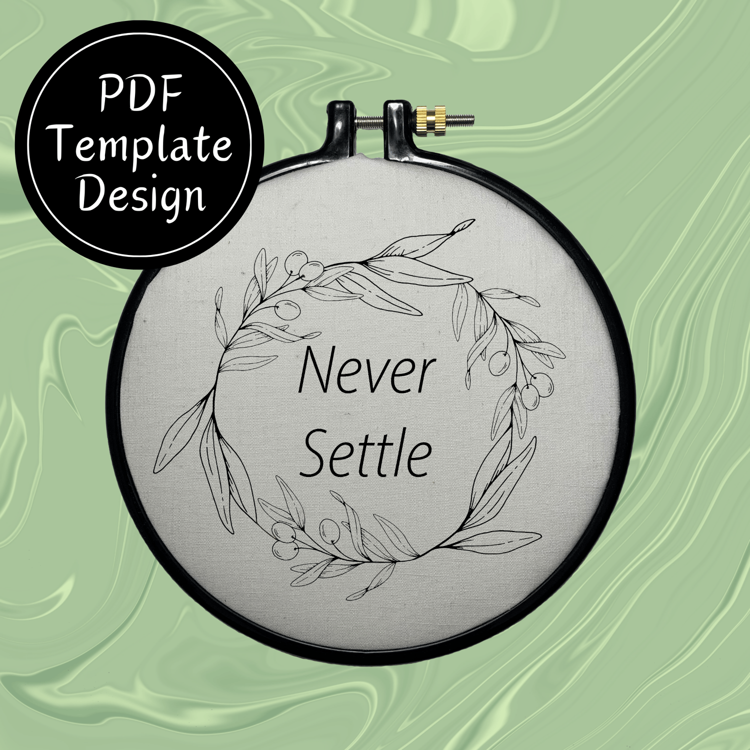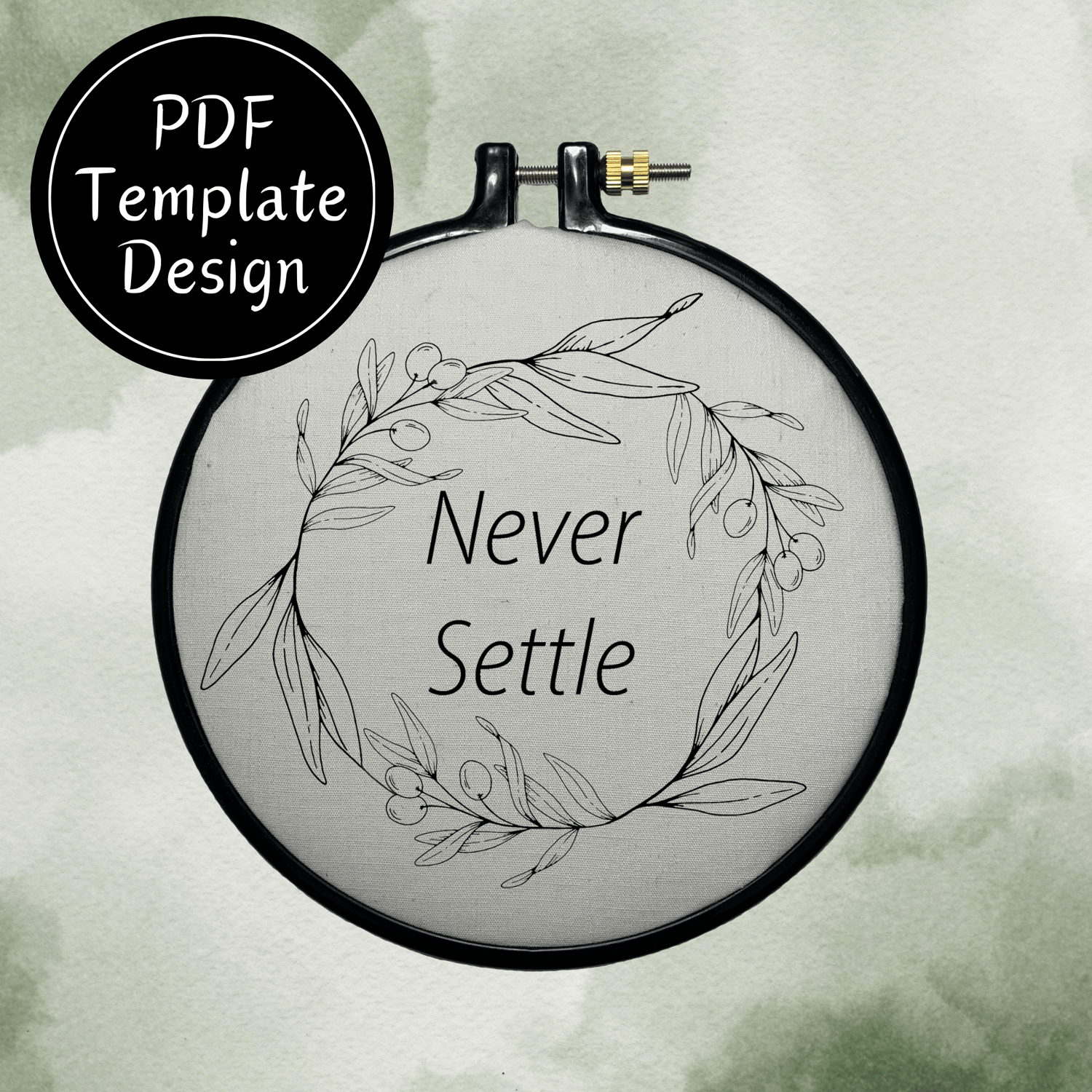 Never Settle Wreath Hand Embroidery Pattern - DIY Design