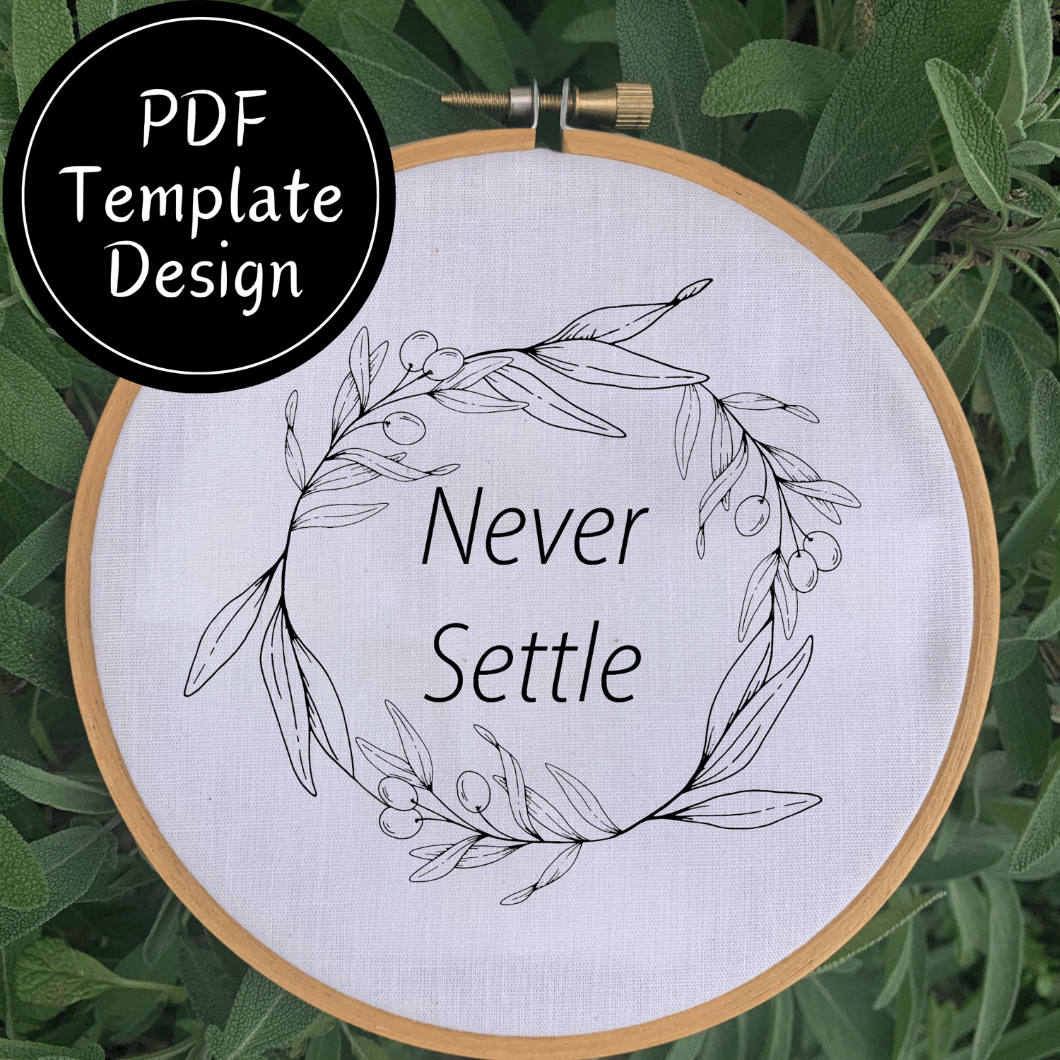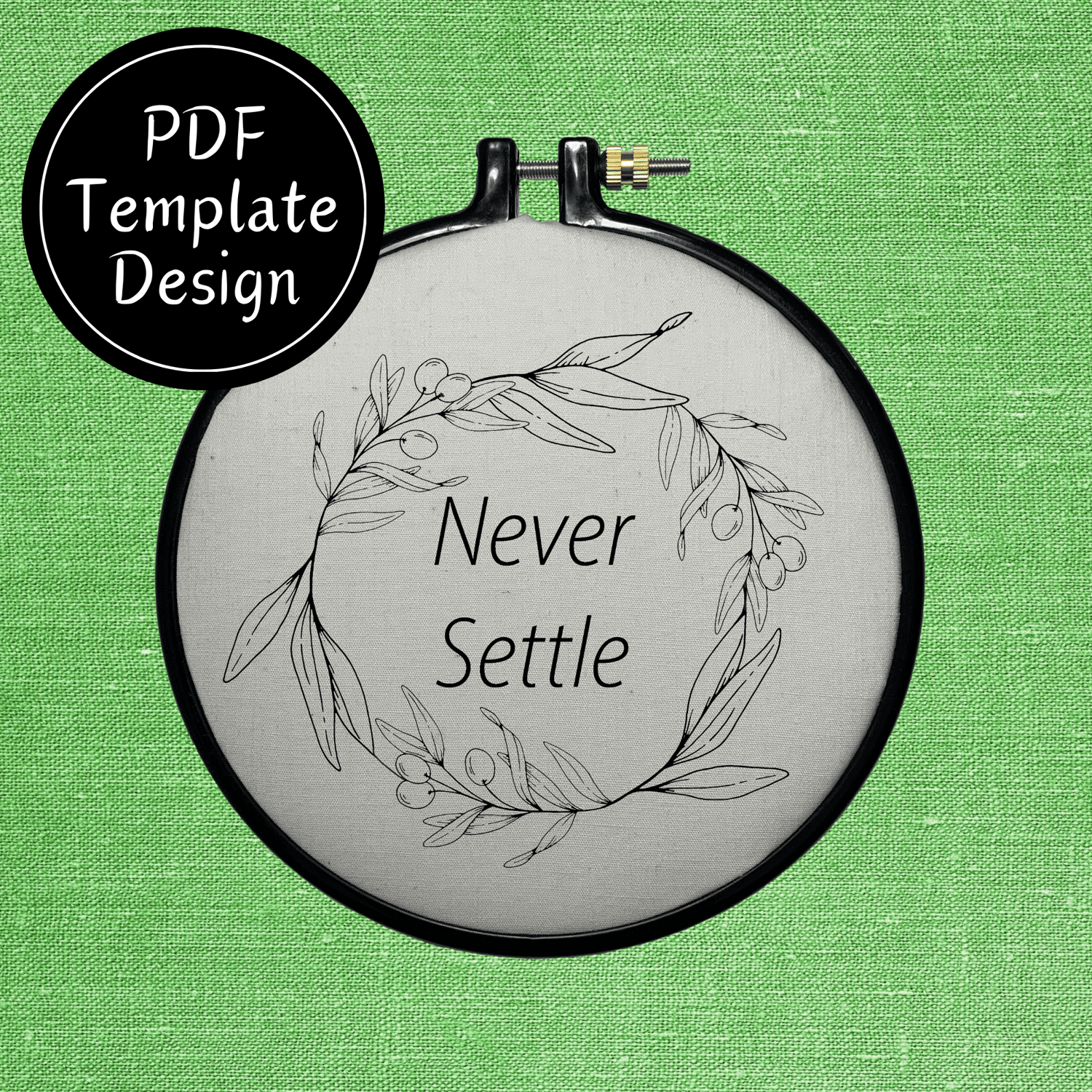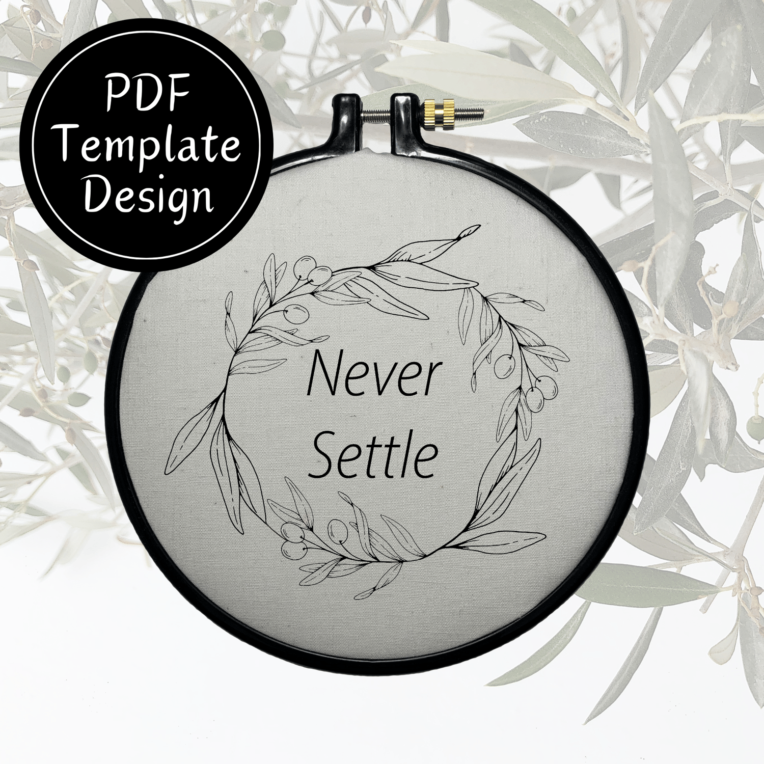 Never Settle Wreath Hand Embroidery Pattern - DIY Design