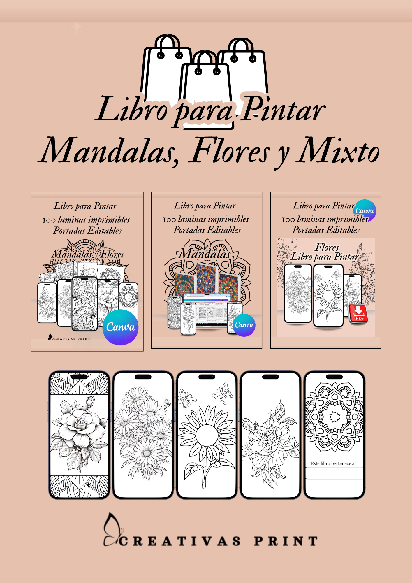 (Incluye: Flores + Mandalas + Mixto | 300 Láminas en Total)