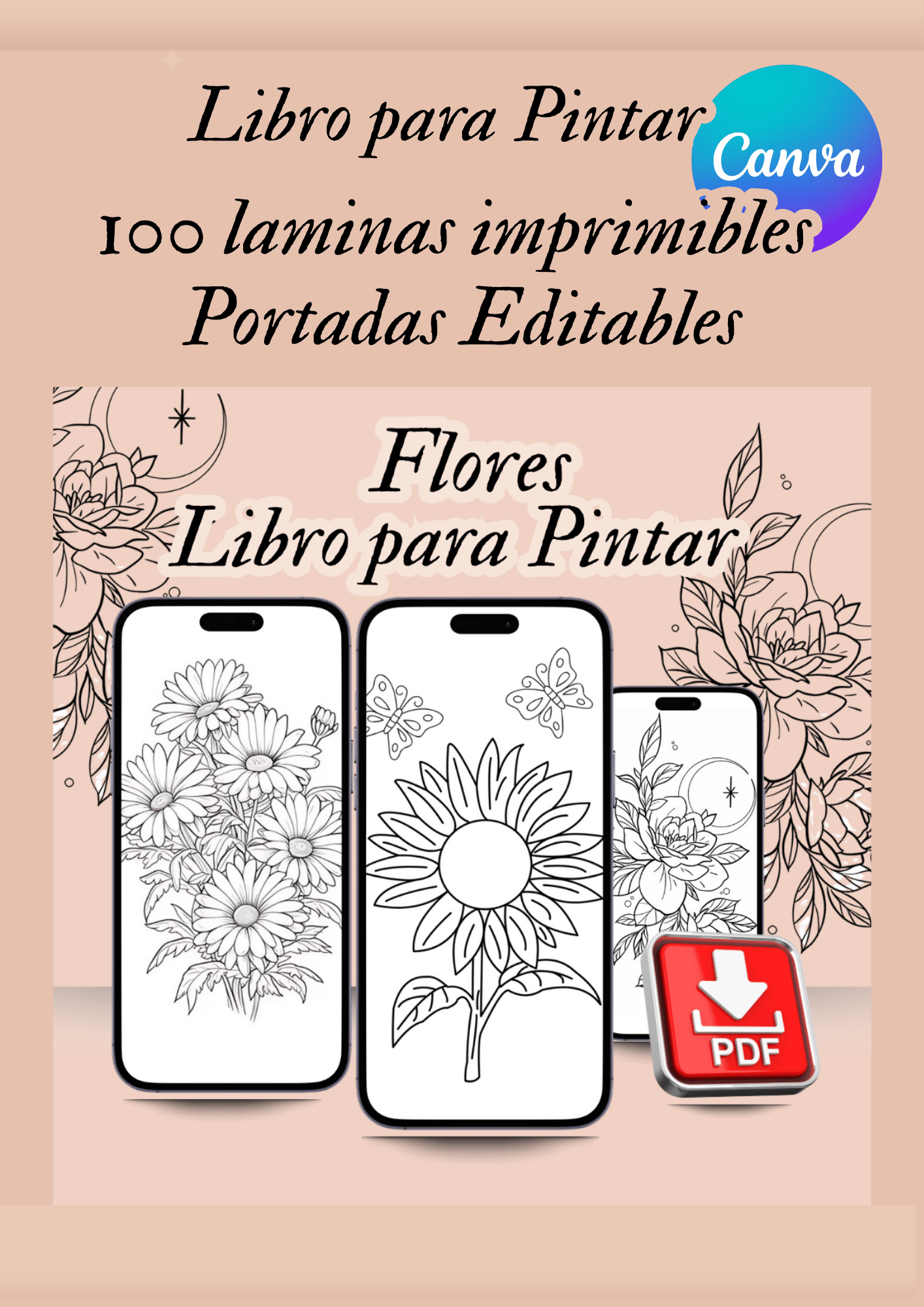 - Libro 1: Flores (100 láminas): Diseños botánicos detallados para conectar con la naturaleza.