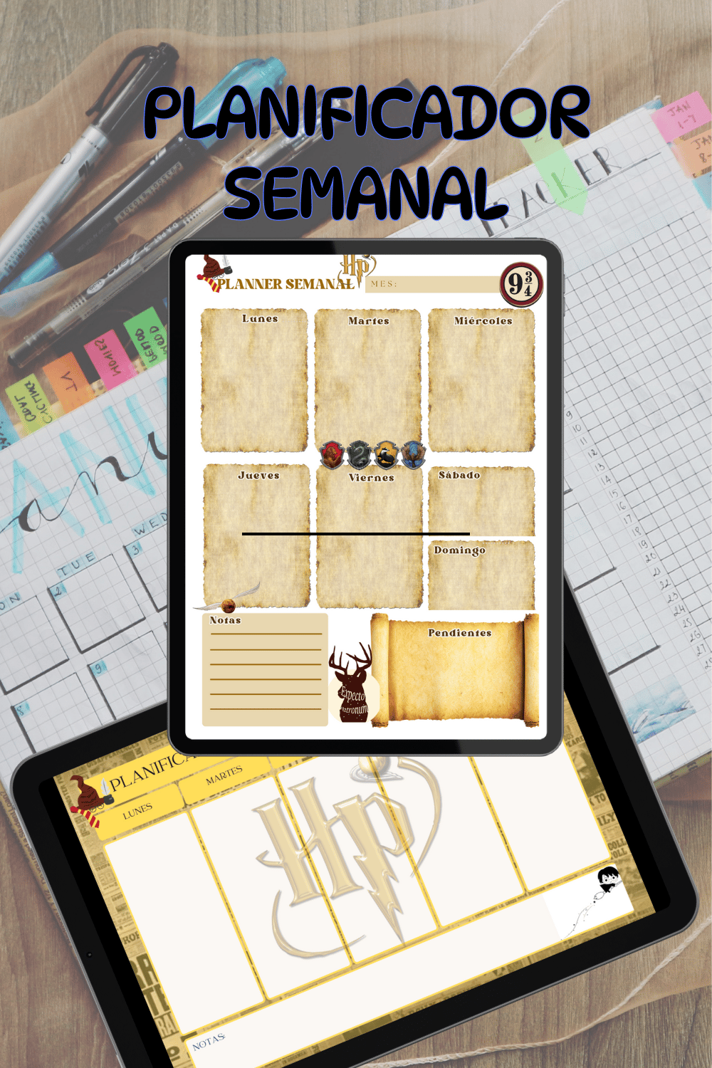 2 modelos de Planificador Semanal Imprimible A4 Harry Potter horizontal y vertical