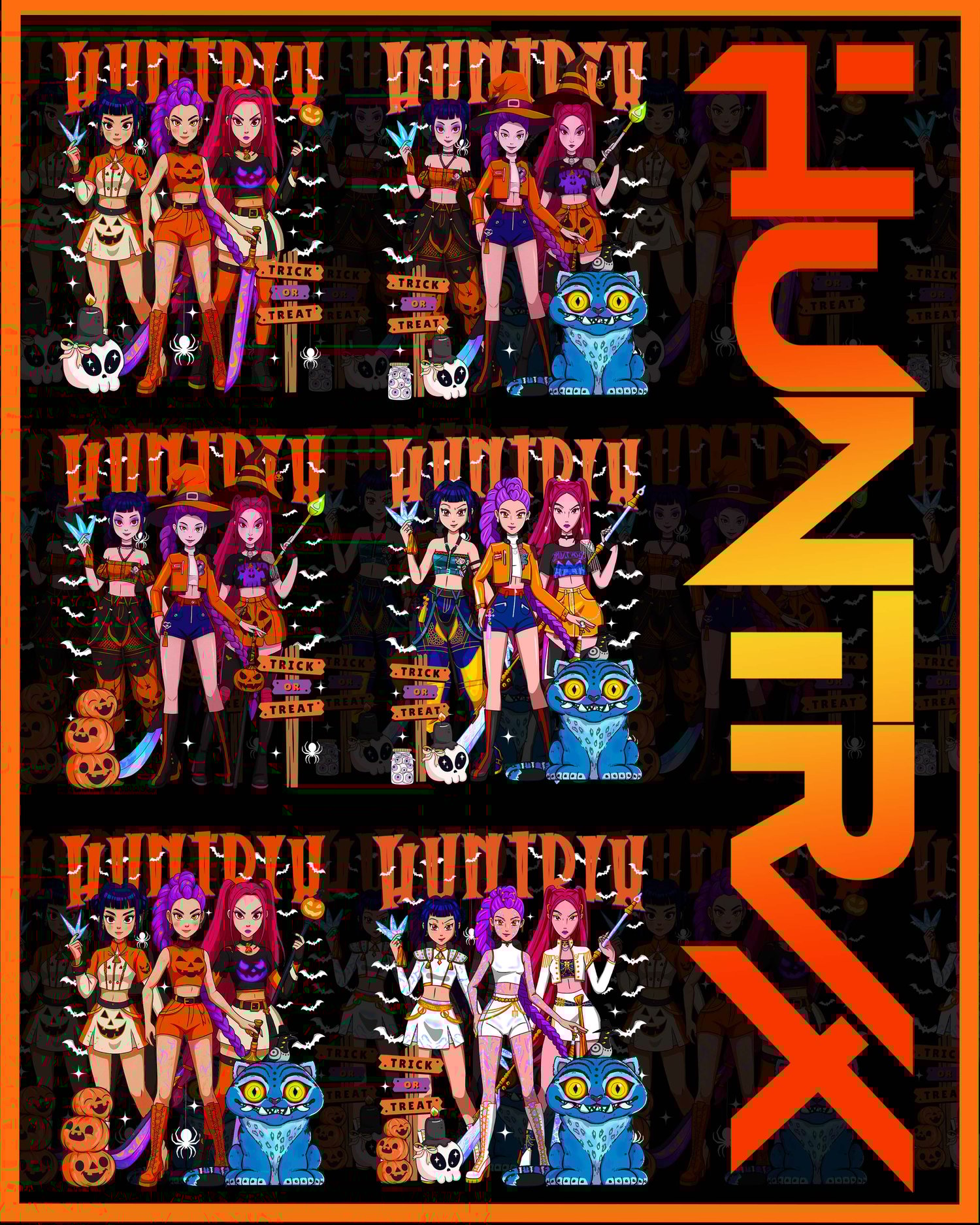Scare in style this season! The Huntrix Halloween Edition brings you spooky, anime-inspired designs crafted for DTF, sublimation, and all your Halloween merch projects.