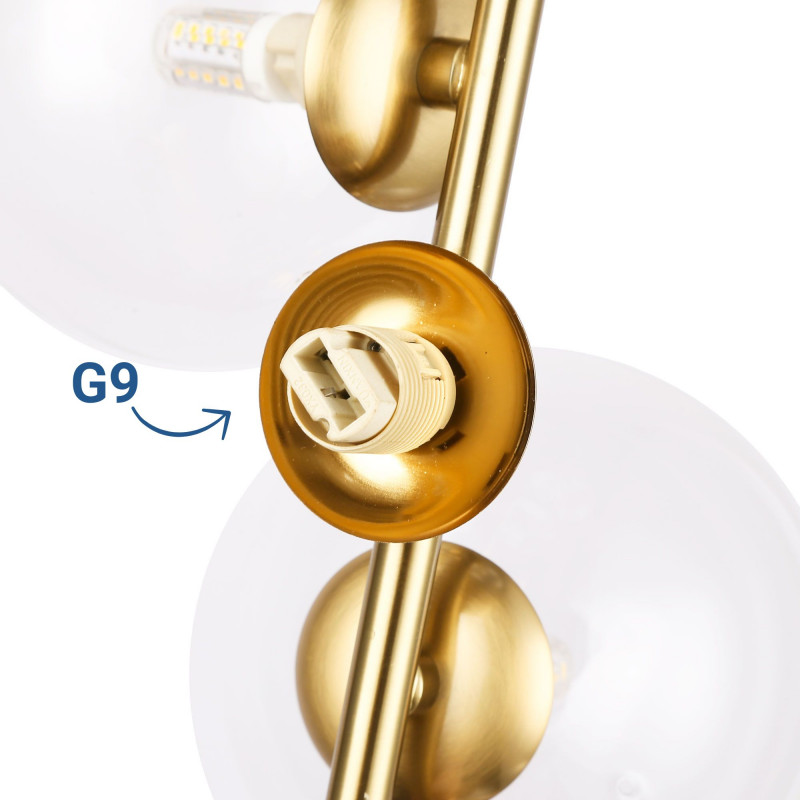 This lamp supports 6 G9 bulbs of up to 5W each (not included), offering flexibility to create different lighting atmospheres, from soft and cozy to brighter and more functional.