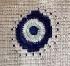 - Motif Applique: The Greek Eye motif is created separately and sewn onto the blanket.