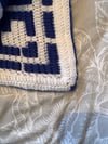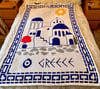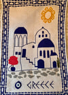 The pattern features the island’s famous white-washed buildings with blue domes, a radiant swirly sun, a delicate floral bush, and the protective "Greek Eye" motif. Each element is thoughtfully crafted to create a visually striking piece that combines culture, artistry, and warmth. Whether you're a seasoned crocheter or looking for your next creative challenge, this pattern offers detailed written instructions (and a chart) for a rewarding and unique crochet experience. Transform your space with the beauty of Santorini—one stitch at a time!