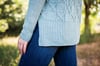 Specified yarn is a sport weight wool blend with alpaca for drape and silk for sheen. The pattern work work equally well in 100% wool or another wool blend. A yarn with some elasticity and stitch definition will pair nicely with the cables.