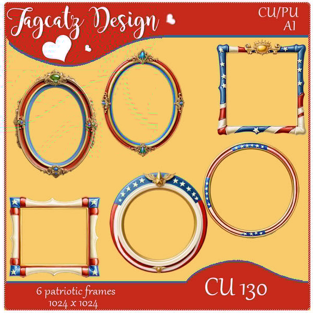 Six patriotic frames for your celebration kits or tags. CU or PU. AI generated. 1025 x 1024 saved at 300dpi.