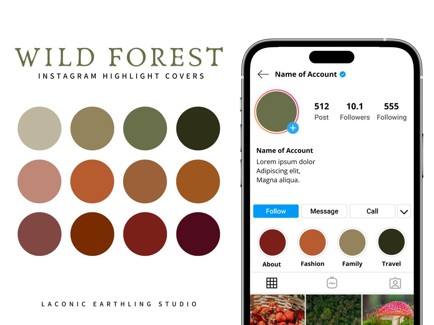 Social Media Instagram Wild Forest Highlight Covers | Neutral Story Instagram Highlights | Editable Canva Covers | Mushroom, Cottage core