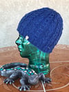 Worked in two different and complementary cable patterns, this hat stretches to fit a multitude of sizes in both children and adult sizing.