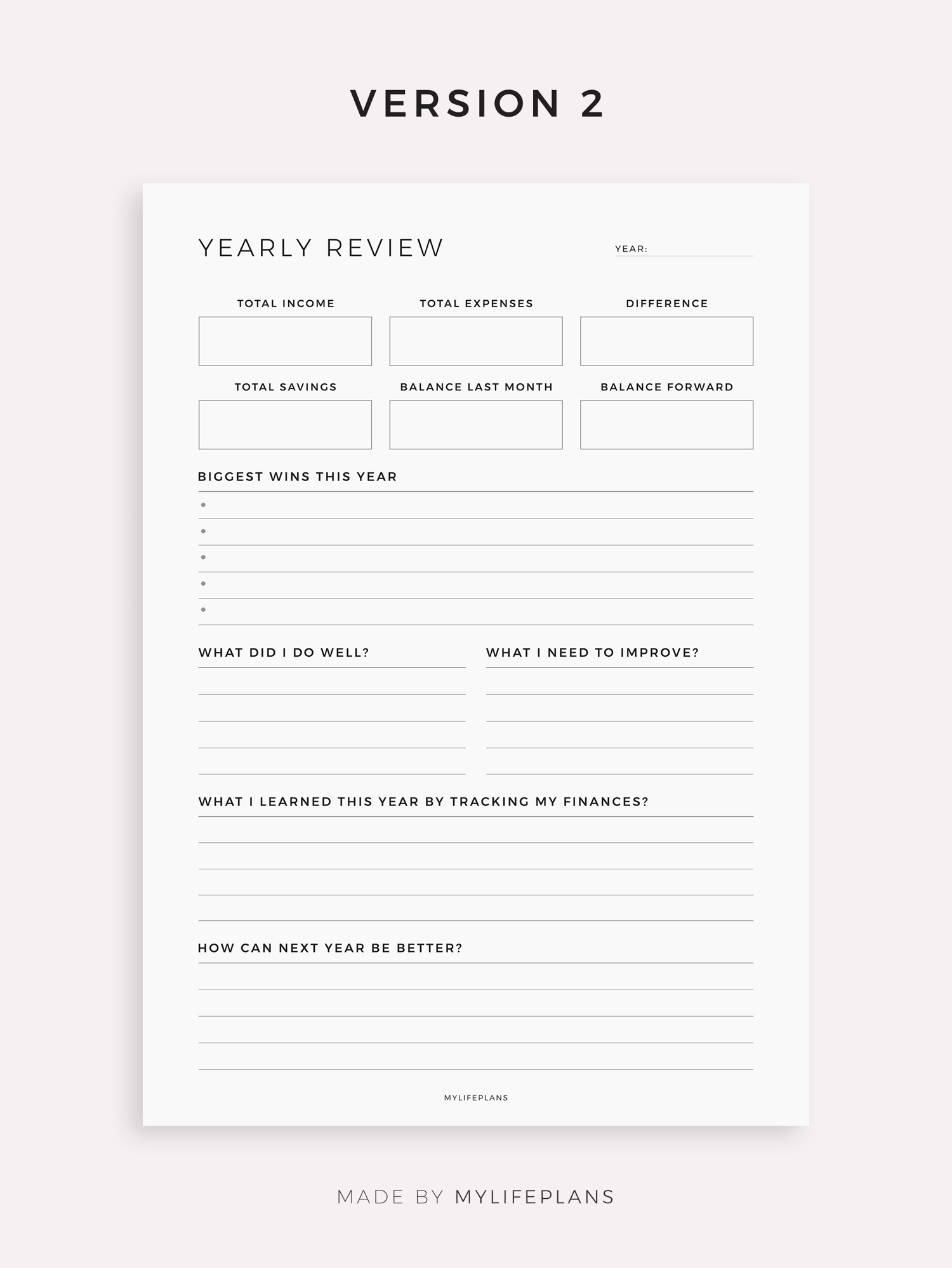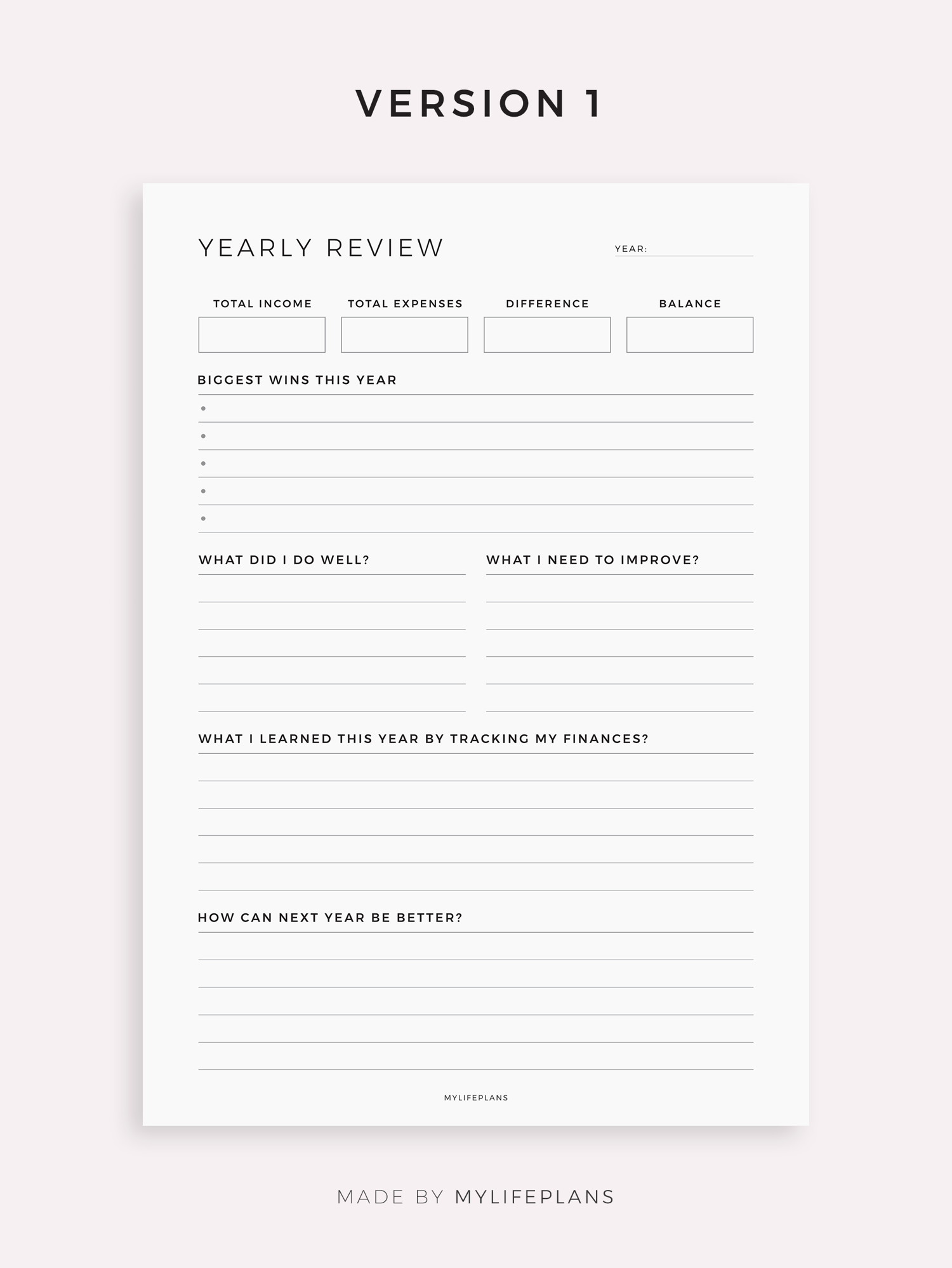 Yearly Financial Review Template for Remarkable, Supernote, Kindle Scribe, Boox, Kobo