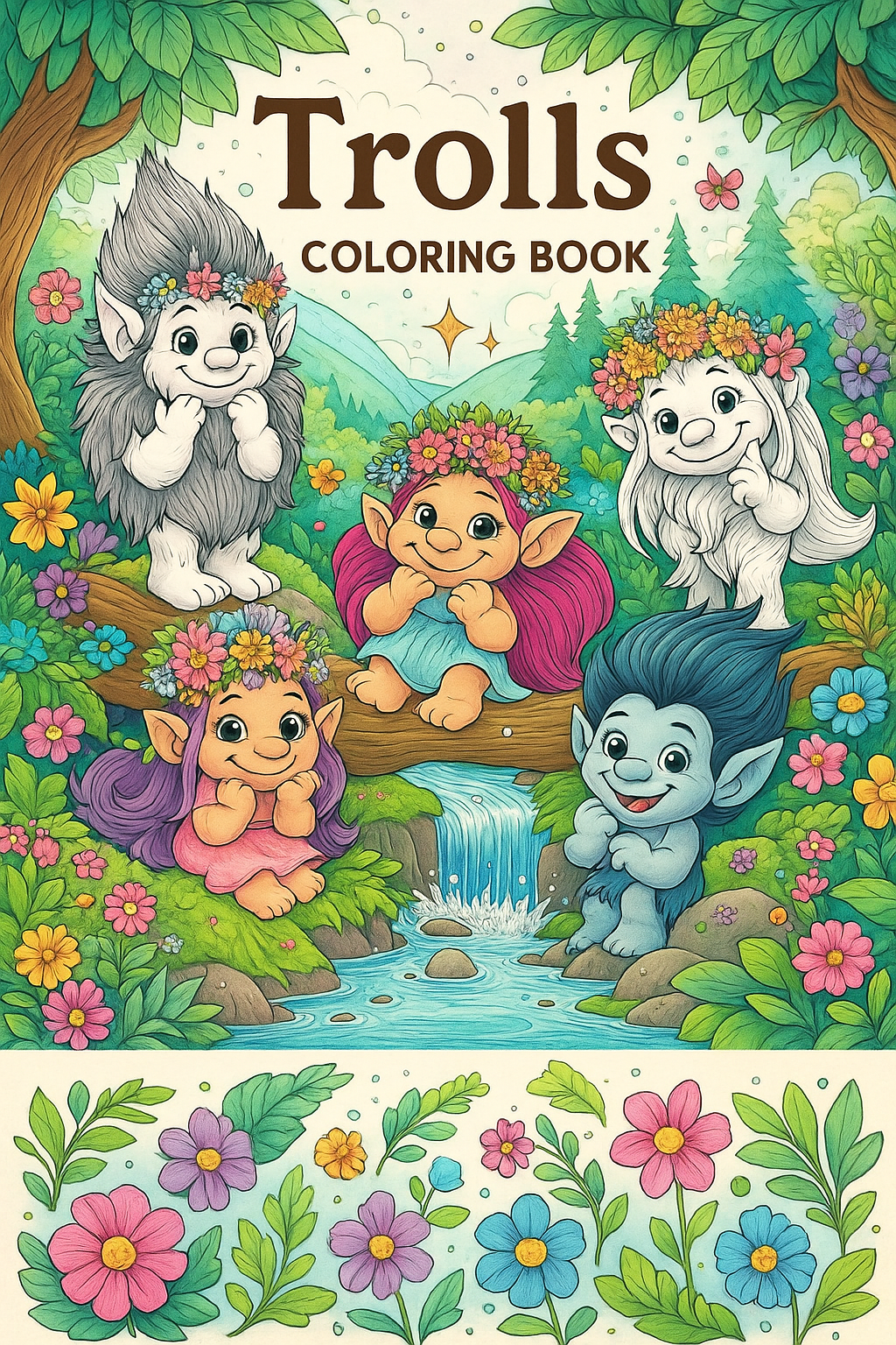 Trolls, 61 designs, coloring ebook, digital printable product, instantly download