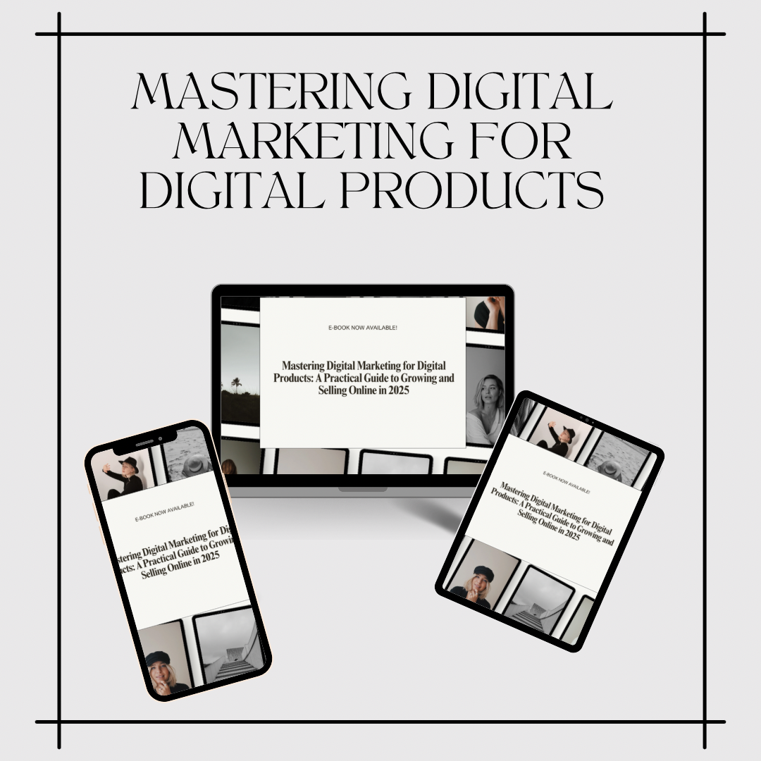 The e-book dives into essential strategies for marketing and selling digital products online — including tools, techniques, and trends to help creators, entrepreneurs, and small businesses grow in the digital economy. The image effectively conveys the theme of digital transformation, modern marketing, and online product sales in a sleek, minimalist aesthetic.