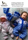 This reborn doll snow suit knitting pattern is written to fit 15–22 inch reborn dolls and can be knitted in either 4-ply or double knitting (DK) yarn, depending on the size you wish to make.