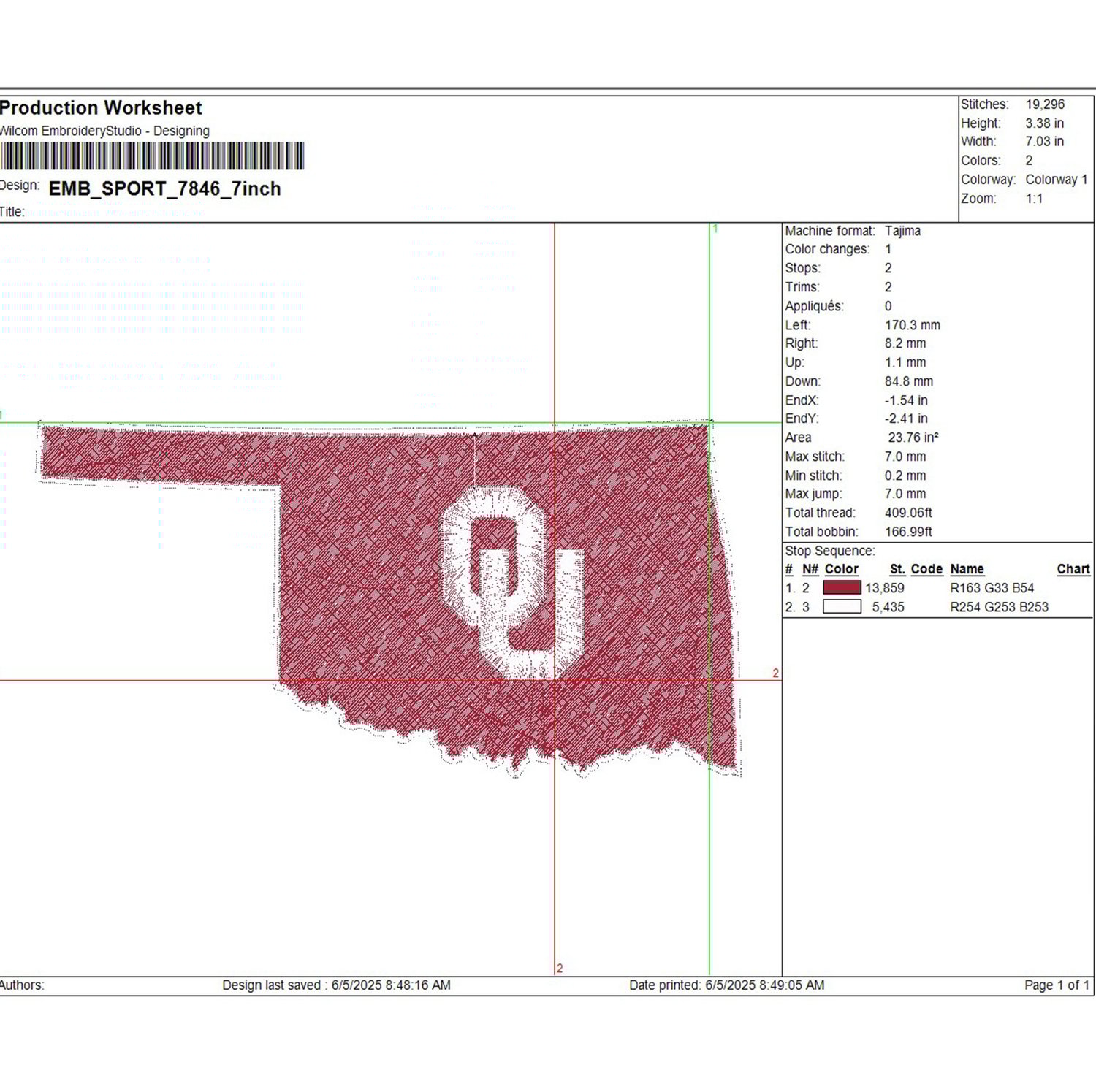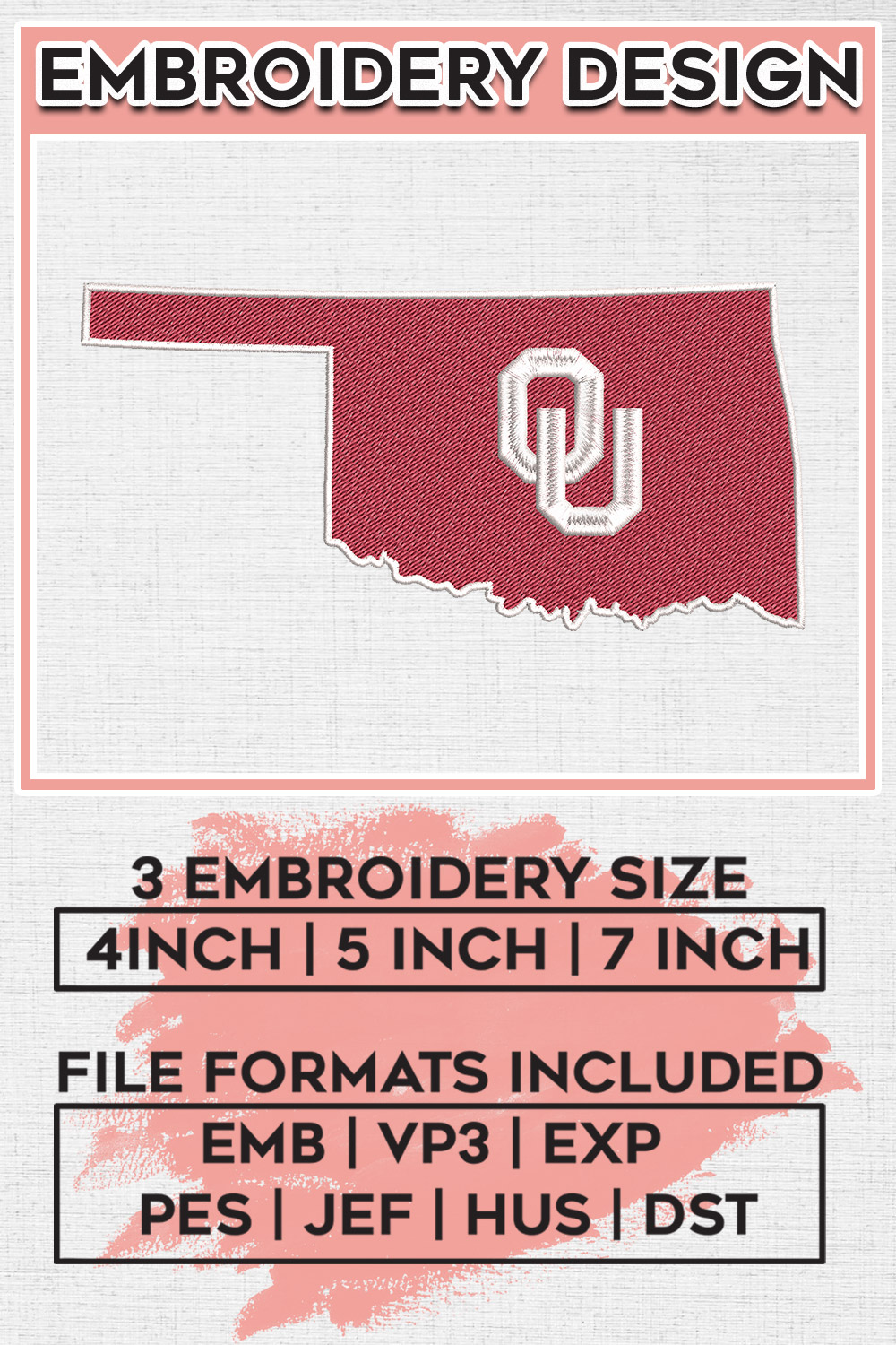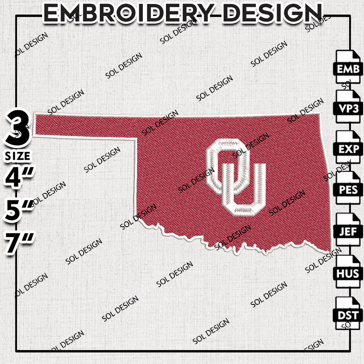 NCAA Oklahoma Sooners Football Team Map Logo Embroidery Designs, NCAA Oklahoma Sooners Machine Embroidery Files, NCAA Logo embroidery designs, NCAA Oklahoma Logo, Digital Download