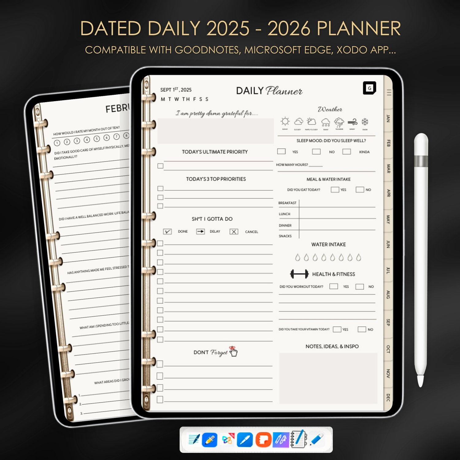This sleek, minimalistic planner syncs with your Google Calendar and is compatible with Goodnotes, Notability, Xodo, and Microsoft Edge – perfect for tablets and stylus users!