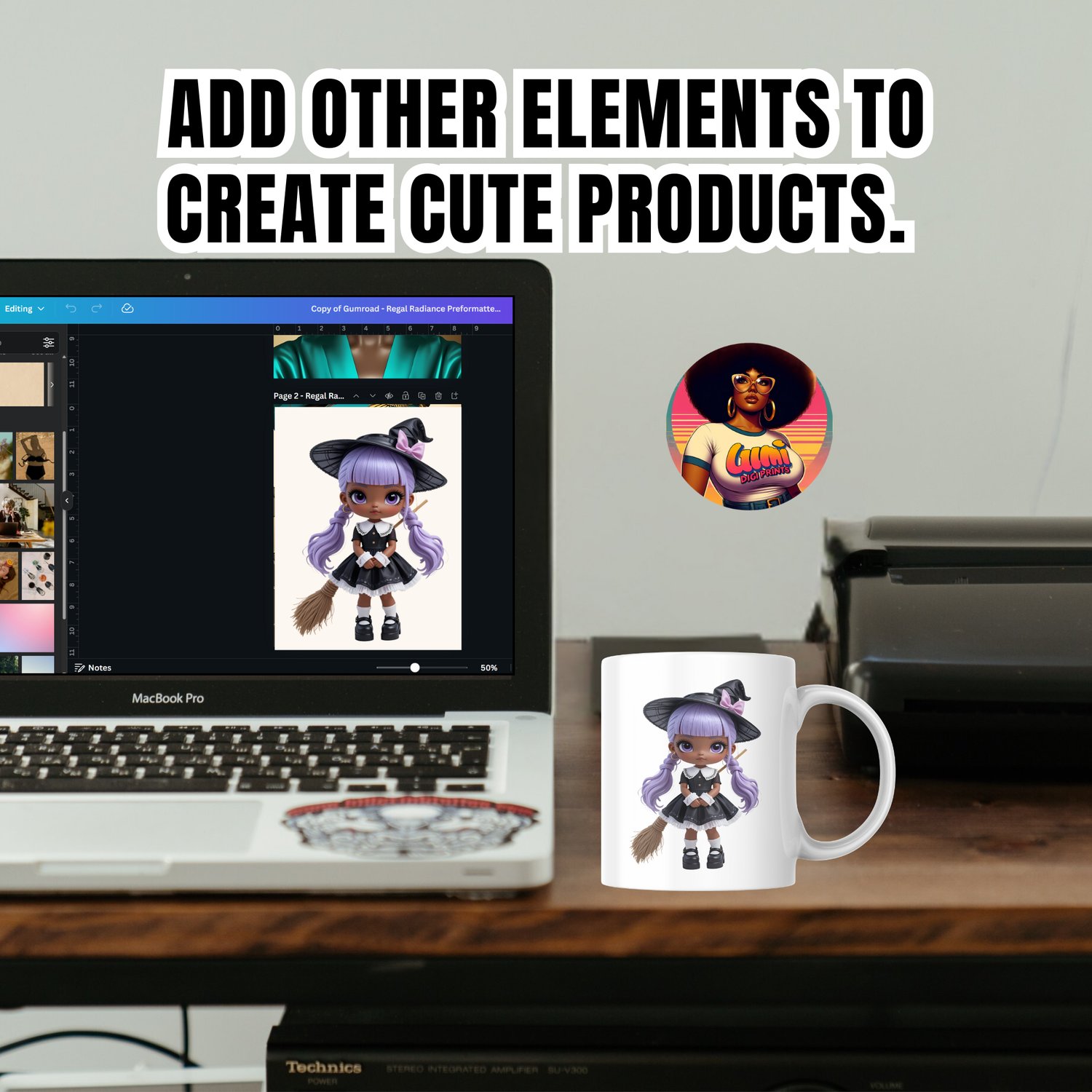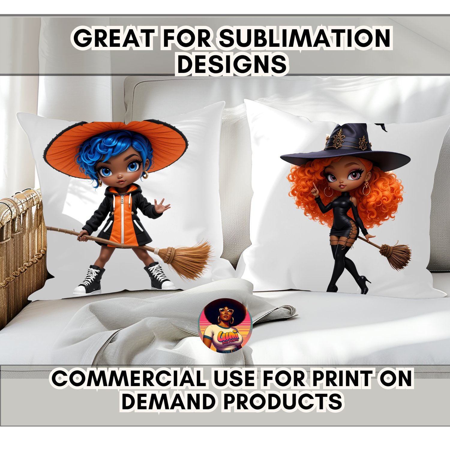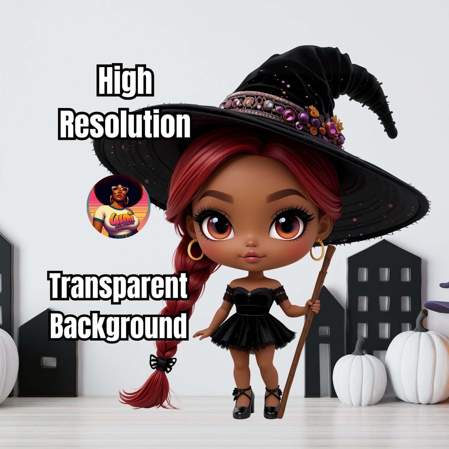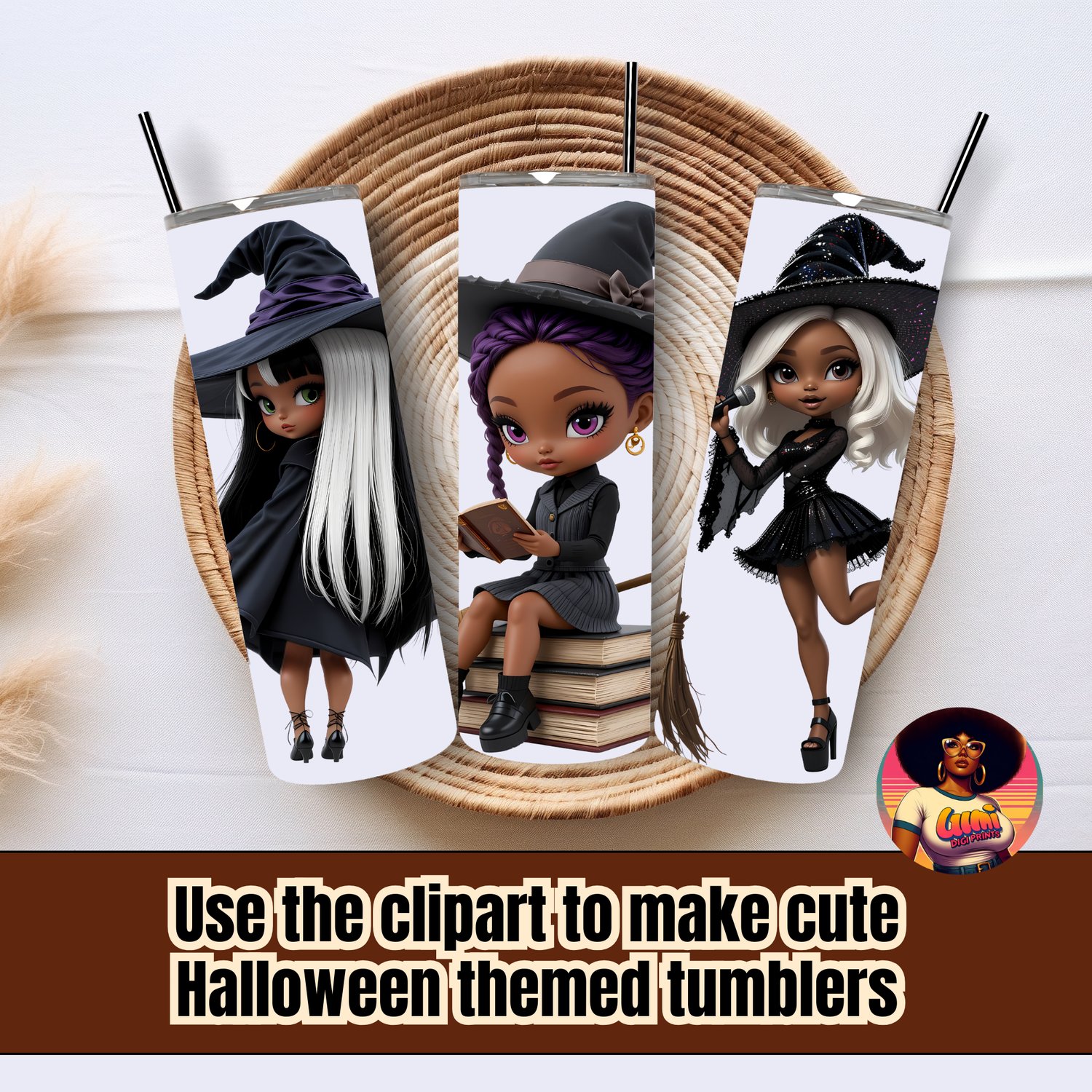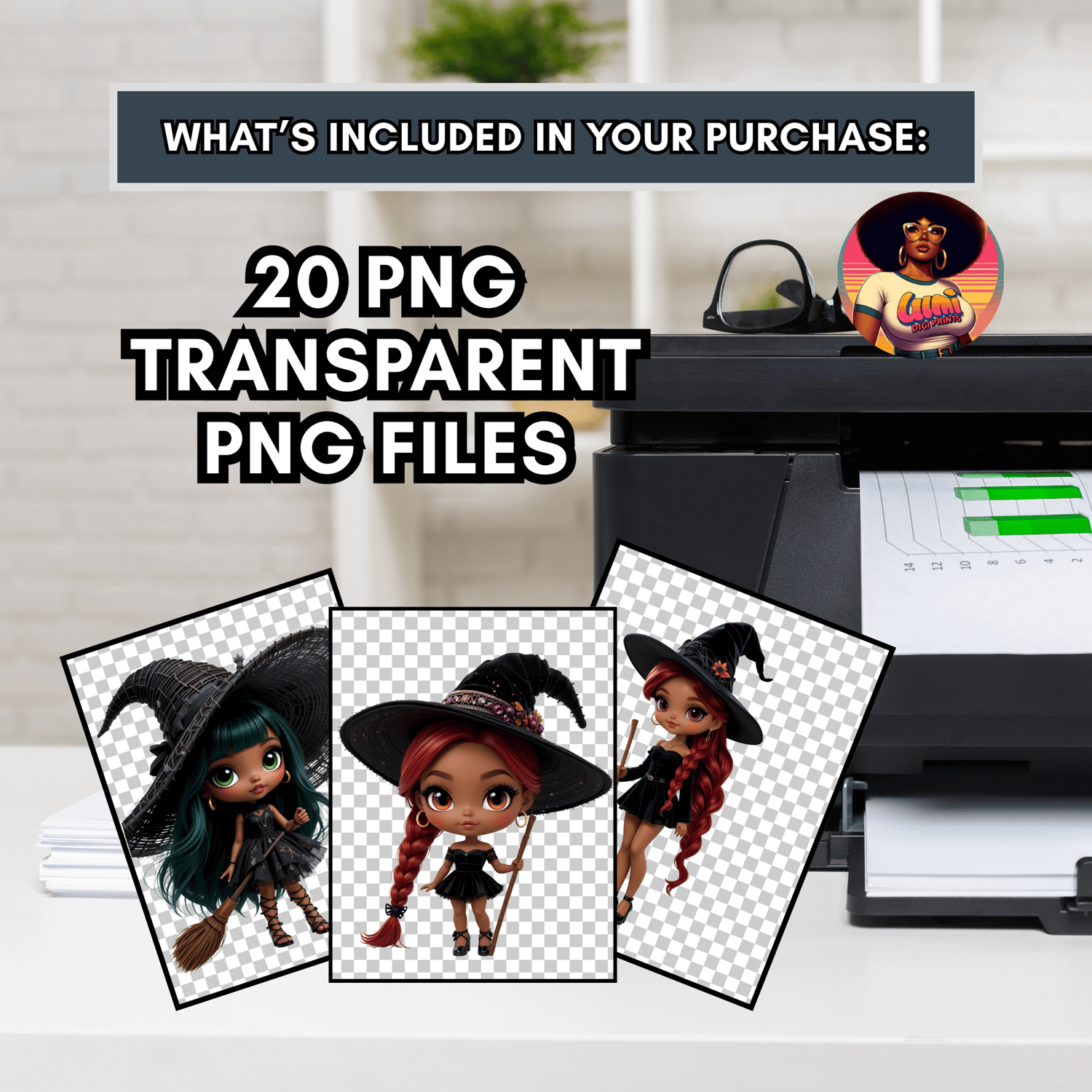 Get ready for the most magical spooky season ever! This enchanting clipart bundle features 20 adorable and diverse witch dolls, each with her own unique personality and style. From a studious witch reading her spellbook to a glamorous witch ready to fly, this collection celebrates Black Girl Magic with a whimsical, Halloween twist.