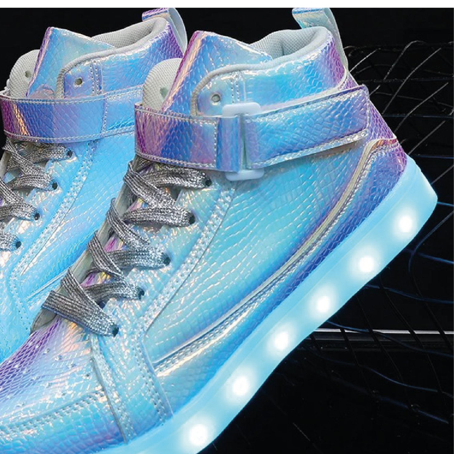 - Lumières LED Révolutionnaires : Intégrez le spectacle à votre pas ! Nos baskets sont équipées de LED offrant une palette de couleurs changeantes et plusieurs modes d'éclairage (fixe, clignotant, stroboscopique...). Contrôlez votre lumière et votre style.