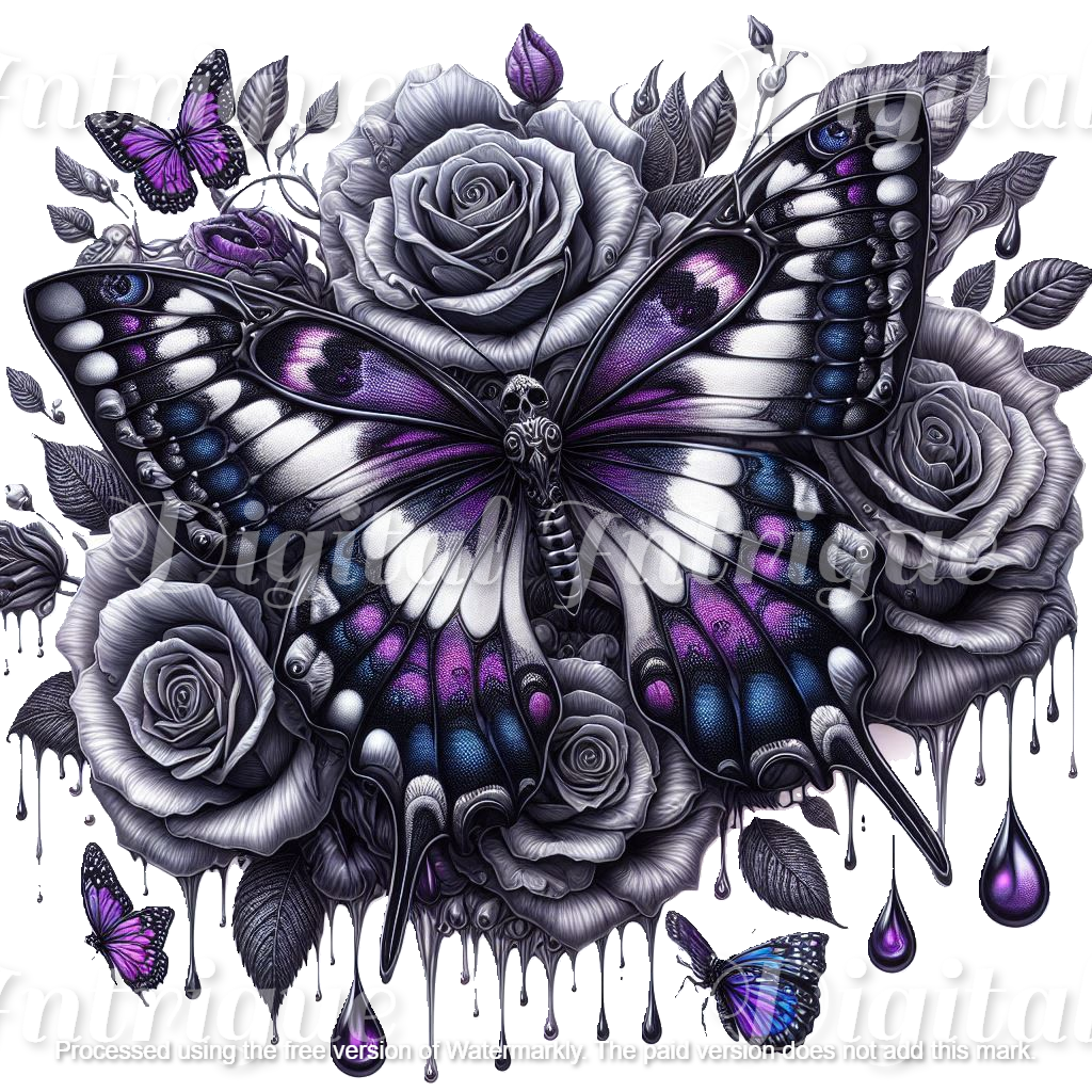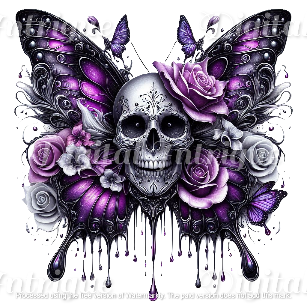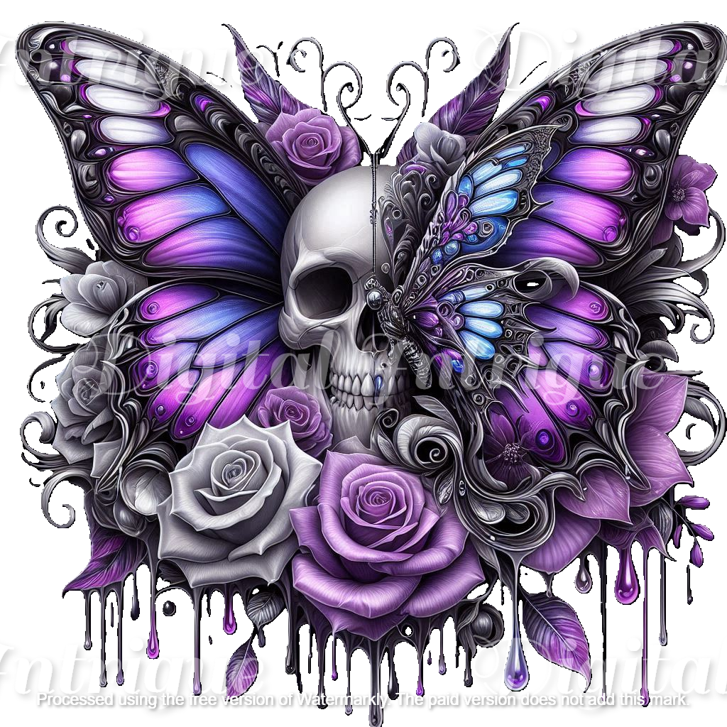 Add a touch of gothic elegance to your creations with this Purple Butterfly and Skull digital download. Perfect for artists, crafters, and designers looking to make a bold statement.