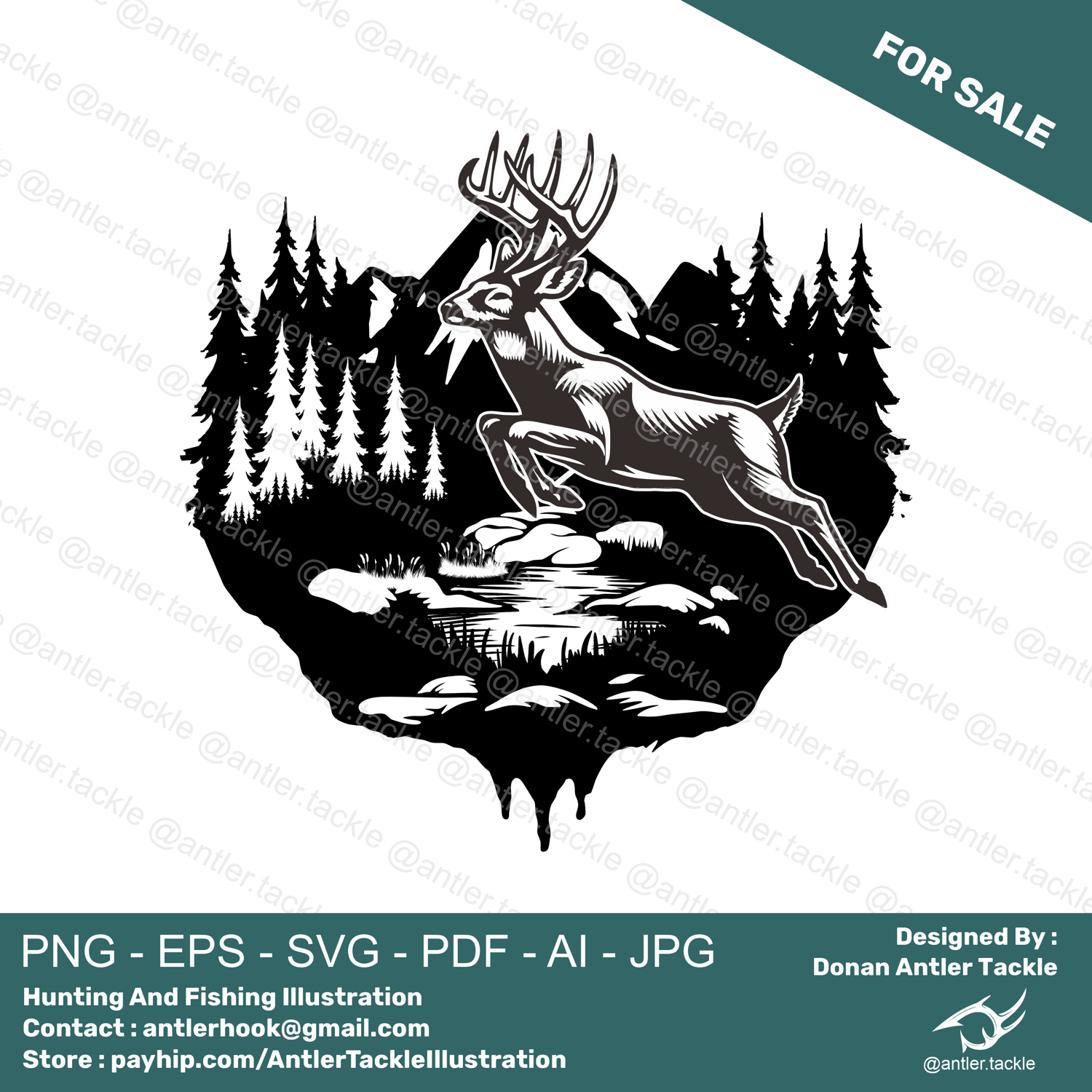 Deer Hunting Illustration Logo Exclusive License Designed By Donan Antler Tackle