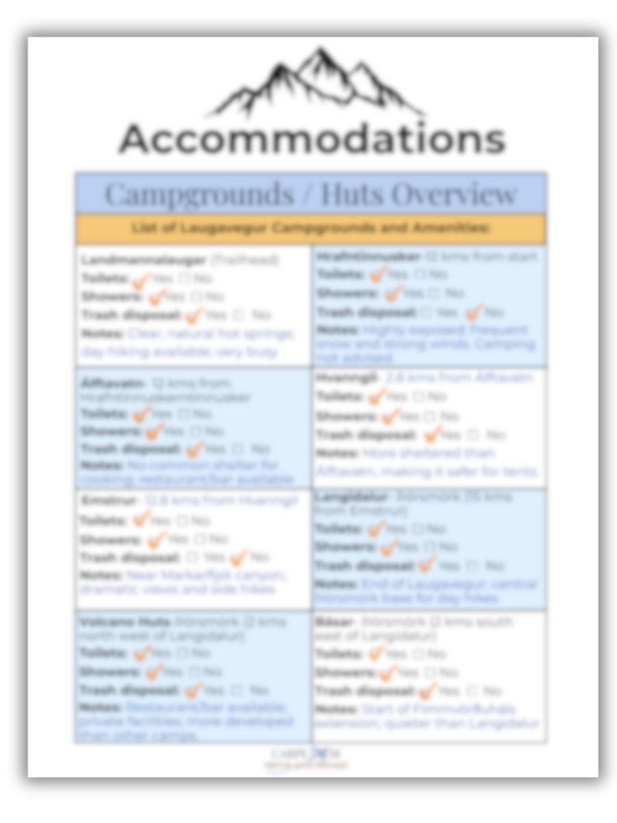 You receive a personalized Backpacking Planner PDF, researched and filled in for your trail, including:
