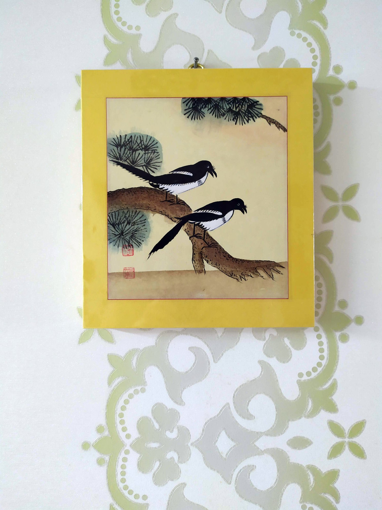 Magpies symbolize joy with good luck, and drawing two magpies means that couples enjoy the joy of longevity.