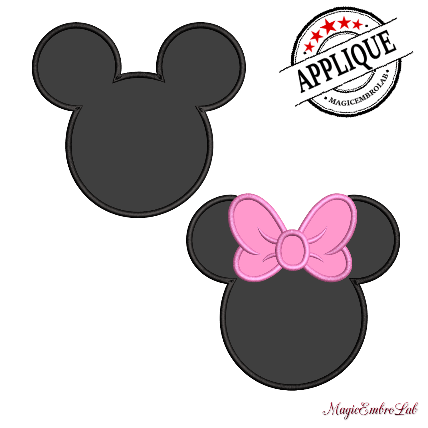 Minnie and Mickey Head APPLIQUE set, 6 sizes, Instant Download