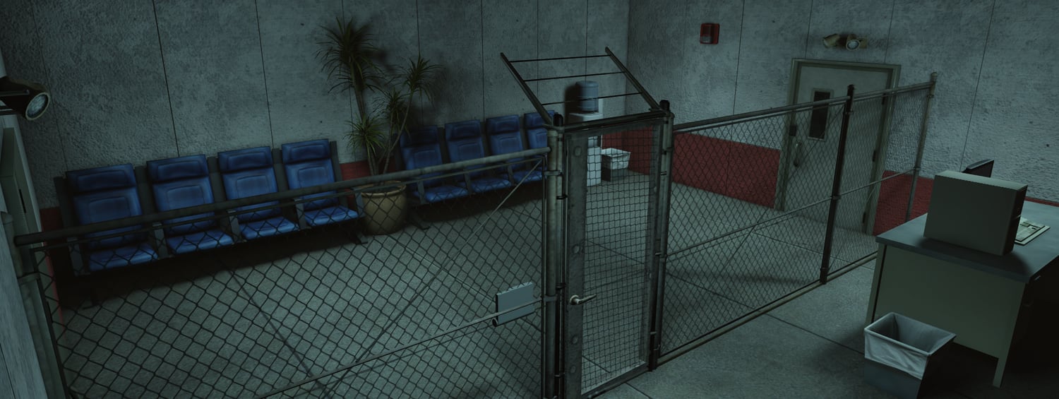 Site D is a medium-sized SCPF map featuring a compact Class D processing facility. This map includes a cell block, hallways, offices, a locker room, a storage room, a server room, a gate, and a dock. Additionally, the whole facility is located inside a mountain on an island with dense vegetation giving people who use the map endless possibilities for events and operations.