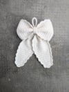 Den hvide Noelia Sløjfe er strikket i Double Sunday ffra Sandnes Garn i farve 1012.