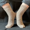 This is a pdf pattern to knit a pair of socks in fingering weight (4 ply) yarn. 2 sizes are given for 8.5 / 10 inch (22/25 cm) foot circumference. Written and charted instructions.