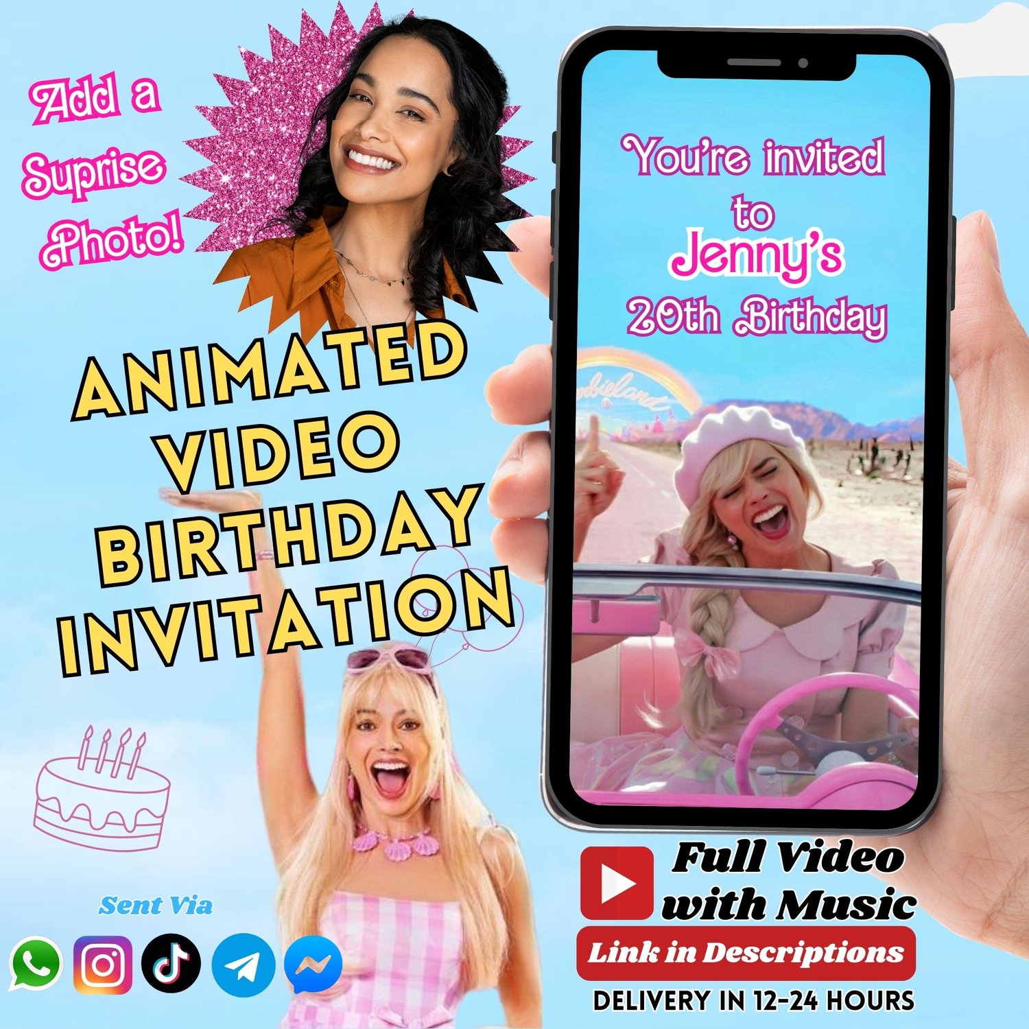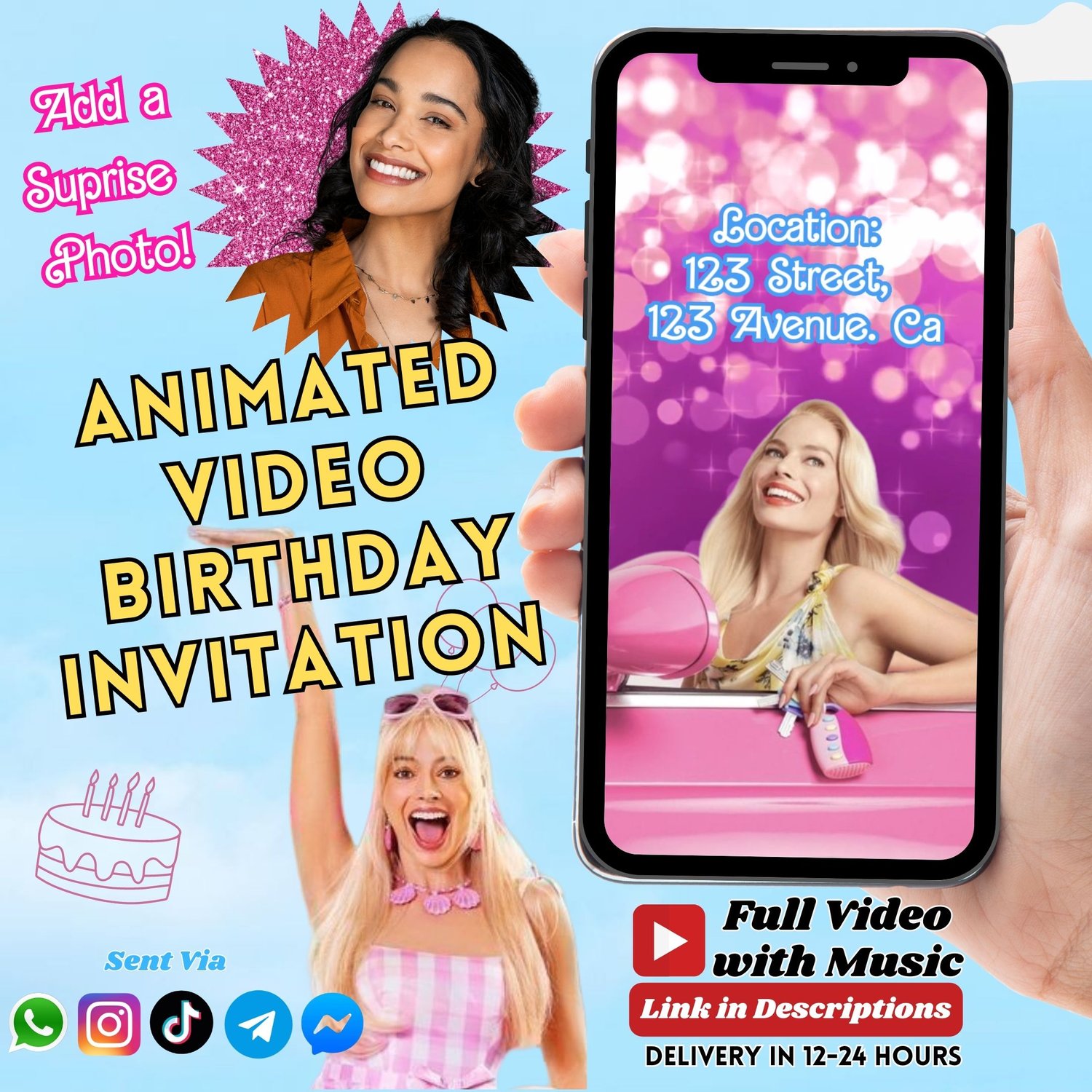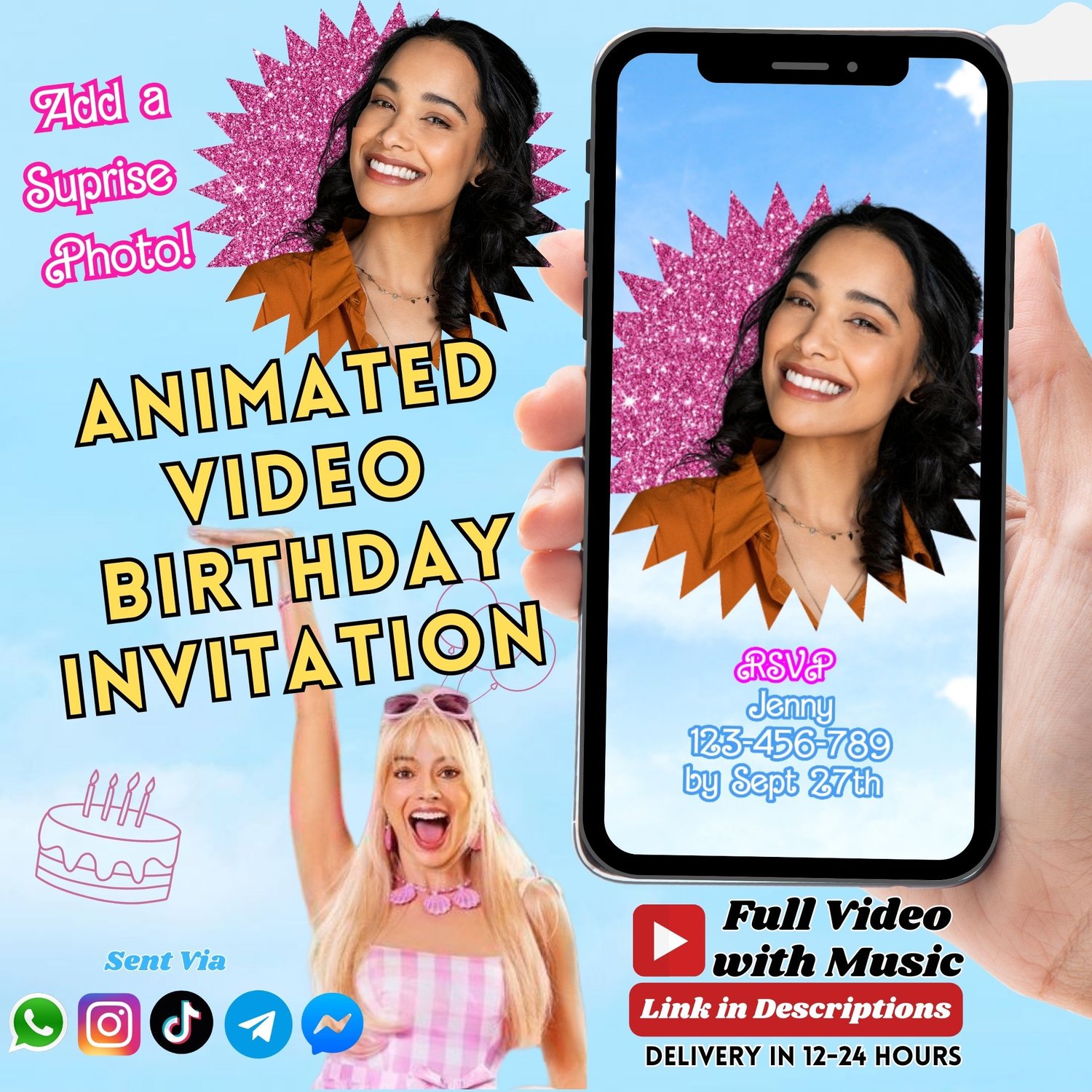 Invite your loved ones and your kid’s buddies to their Barbie birthday bash with this fun and cool animated Birthday Video invitation. It’s a breeze to share the invitation with everyone via WhatsApp, TikTok, Instagram, Messenger, telegram or any other social media platforms.