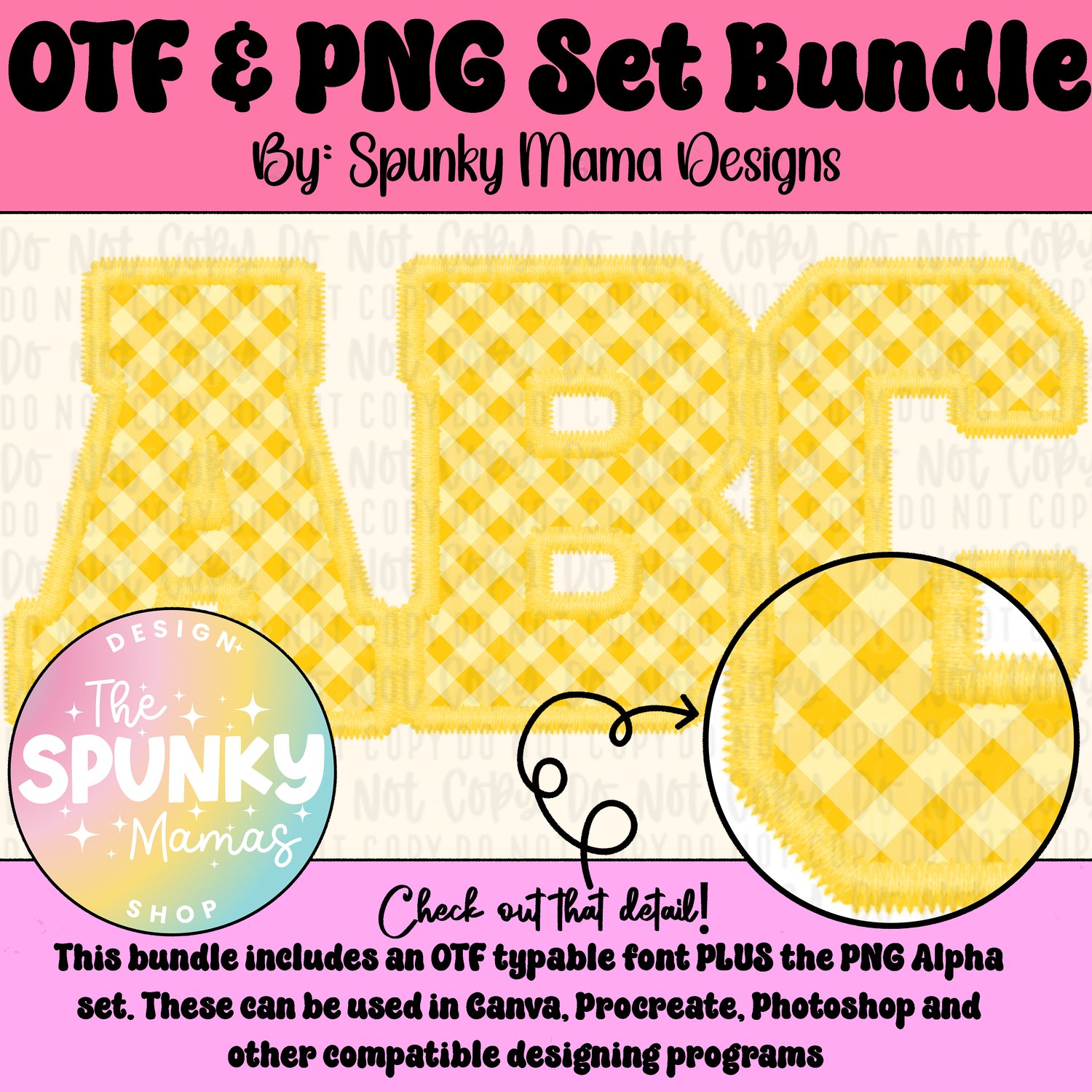 Yellow Plaid OTF Font & Digital PNG Alpha Set