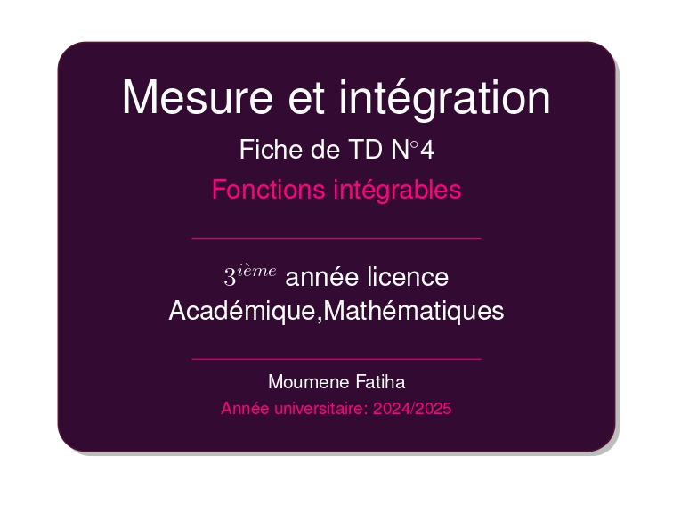 📘 Mesure et Intégration Fiche TD4 : Fonctions intégrables