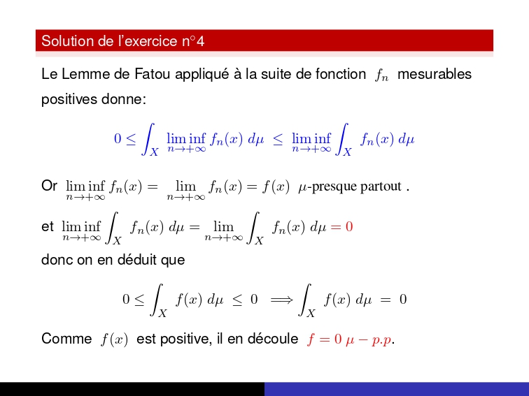 📌 Thème central : Applications des trois théorèmes de convergence — Fatou, Beppo Levi et la convergence dominée