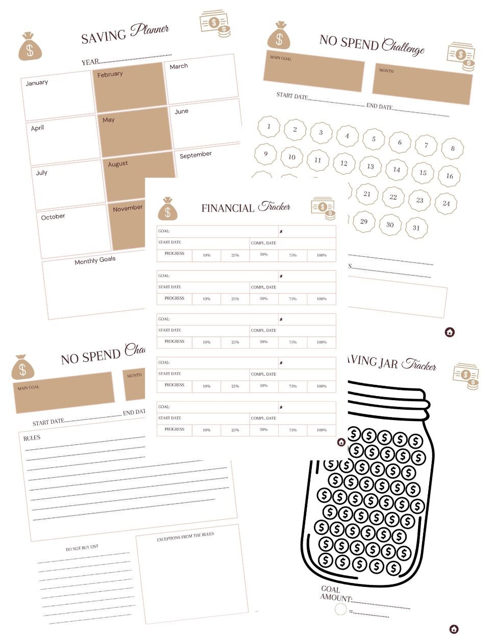 80+ Pages full of Budget Printables, with tools for budgeting, including planners for managing your finances, tracking your savings, monitoring your expenses, and engaging in savings challenges.