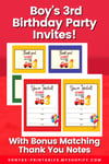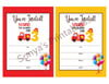 Printable Boy's 3rd Birthday Invitation | Boy's 3rd Birthday Invite | Birthday Invitation With Fire Truck | Bonus Thank You Note Cards