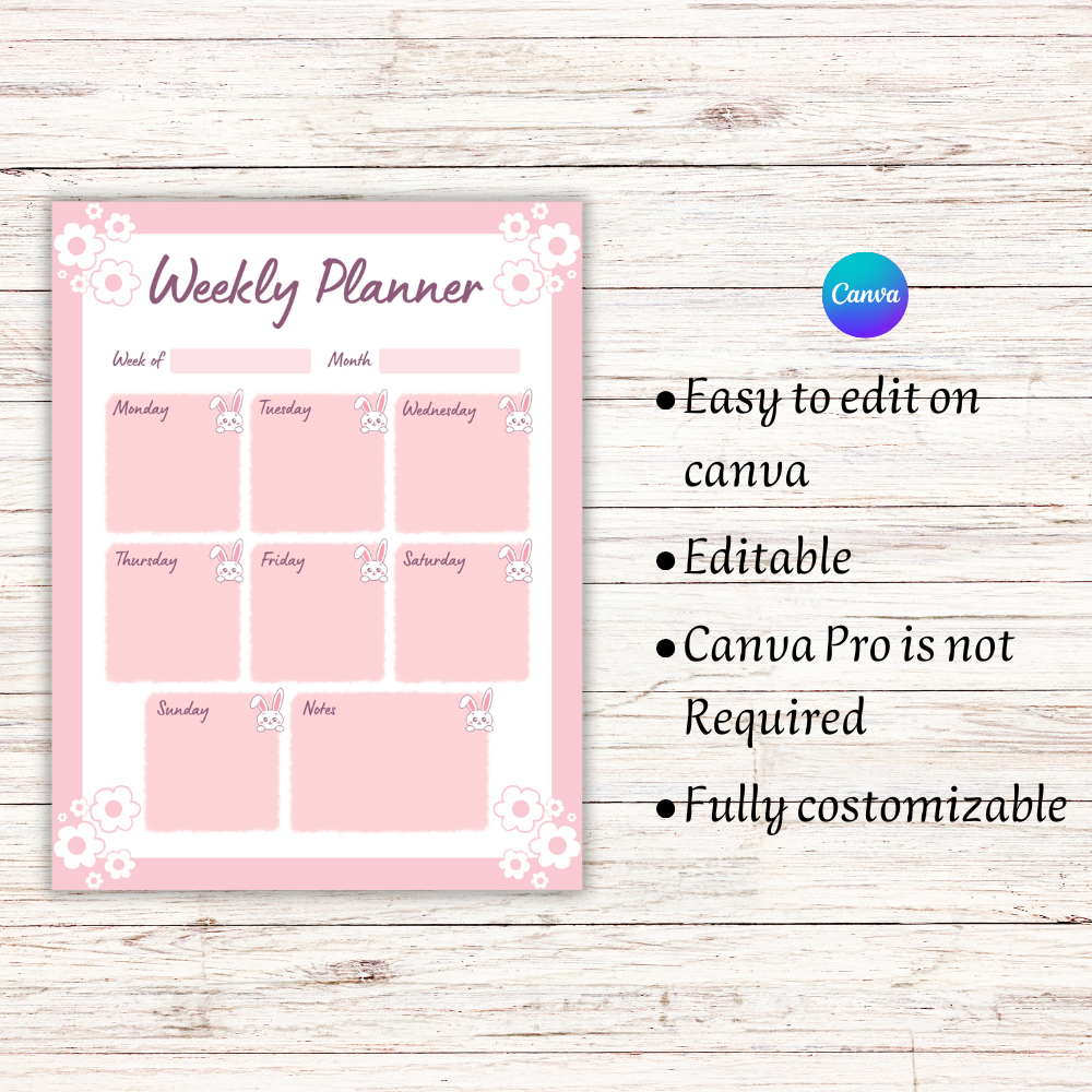 SEO Keywords: Printable weekly planner, one-page planner PDF, Canva weekly planner template, A4 A5 Letter planner, minimalist weekly schedule, productivity planner, digital planner PNG, editable Canva template, GoodNotes planner, instant download, minimalist planner, editable planner, time management tool, bullet journaling, time management, weekly scheduling, Great for teachers, entrepreneurs, students, back to school, GoodNotes, girly, pink, flowers, flower, floral, florals..