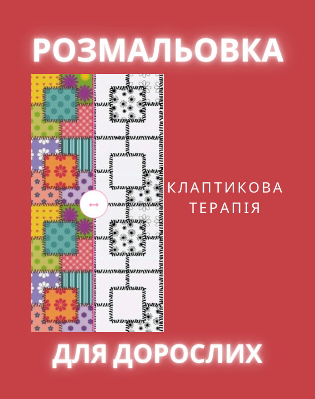 Малювання таких сторінок чудово знімає стрес і допомагає зосередитись на теперішньому моменті. Клаптикова терапія — це творчість без правил, де кожен може створити власну гармонію кольору.