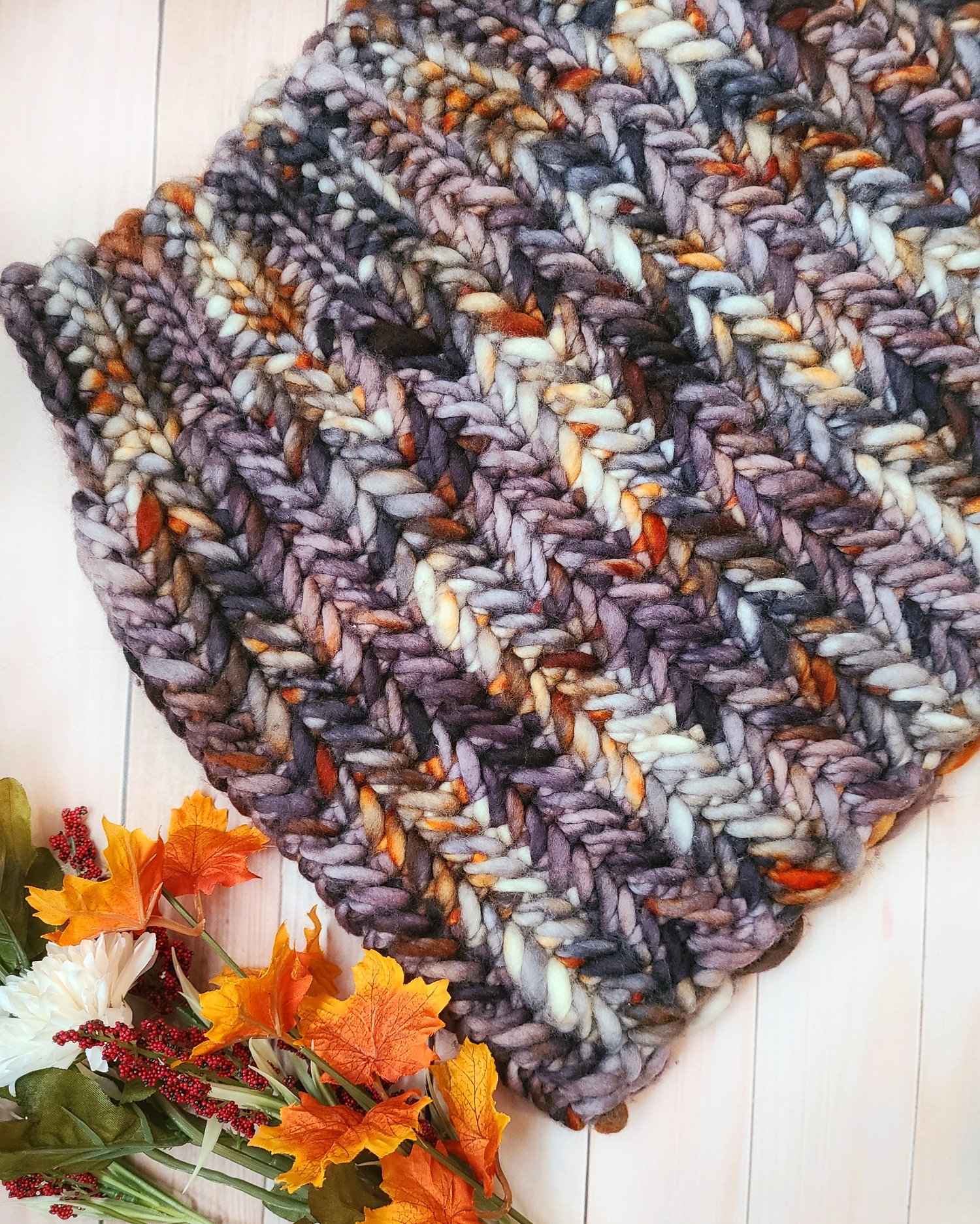 It is November, and by now many of the leaves have fallen, blown away from strong autumn rain. There is a definite chill in the air and a need for something extra warm and cozy to transition into the winter season. The Autumn’s End Cowl is just that. It is an advanced beginner pattern that with a beautiful texture that also features a tapered collar to keep your face and neck warm as the temperatures continue to dip.