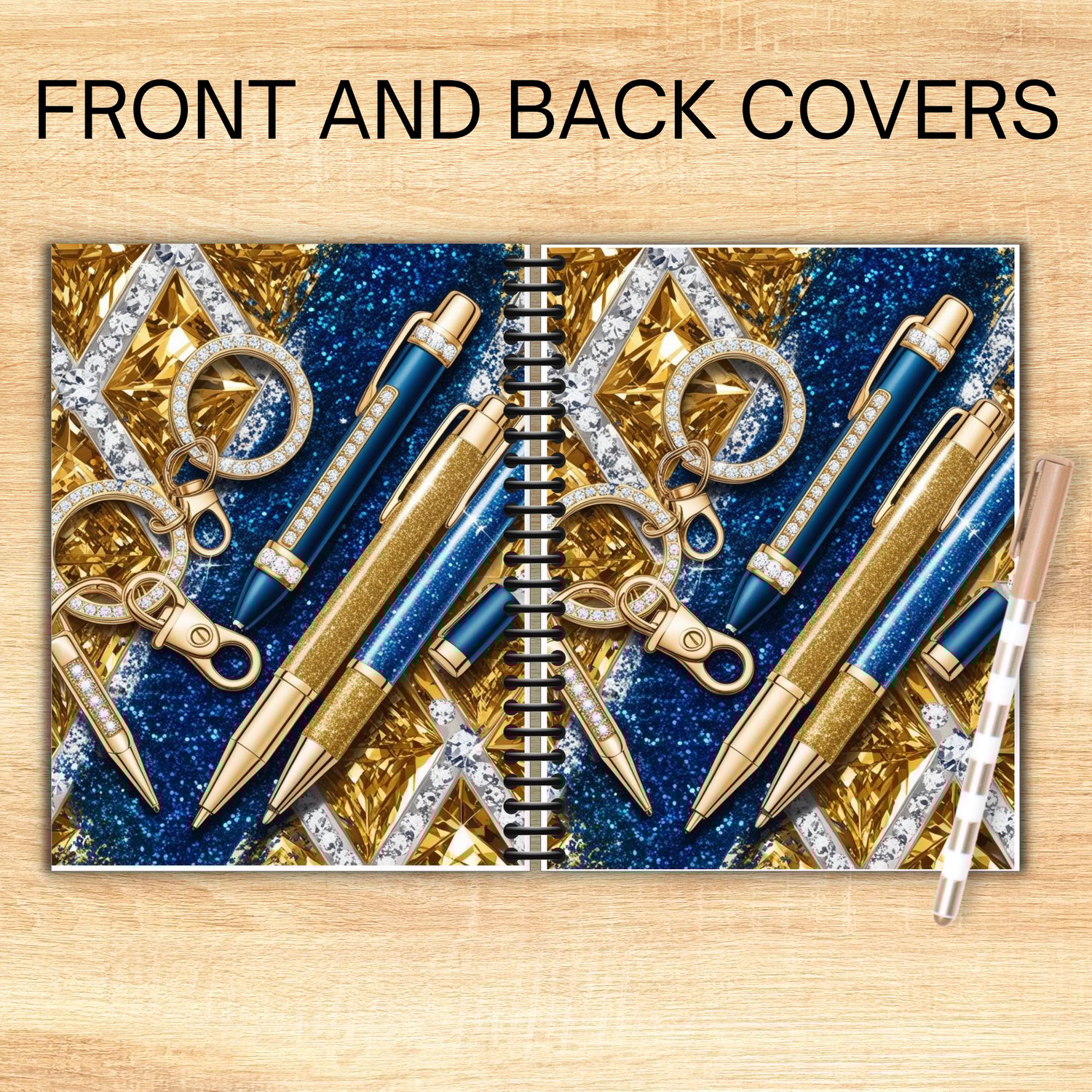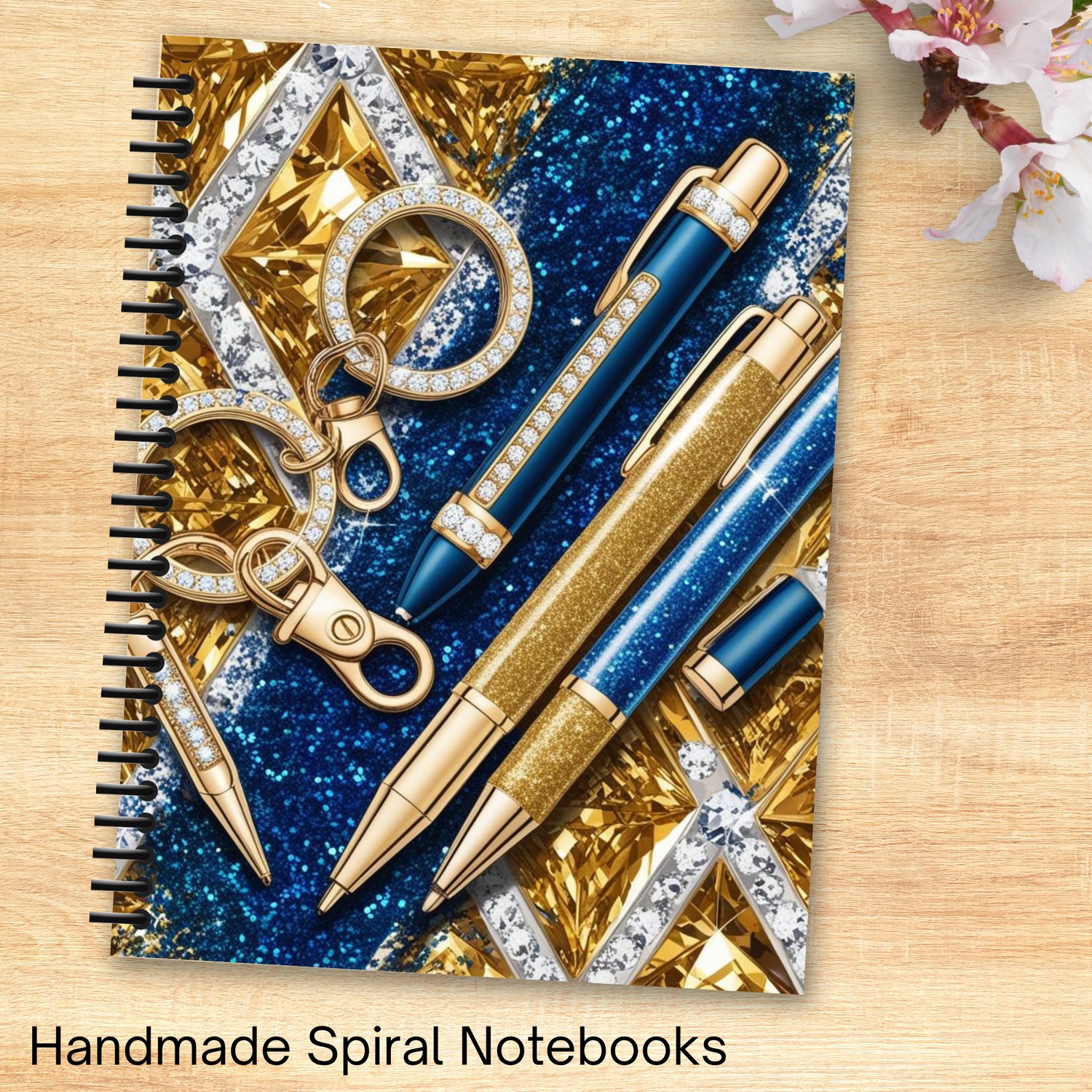 Glitter and Glam in Navy Blue and Gold 2 - 8x10.5 Handmade Spiral Blank Lined Notebook