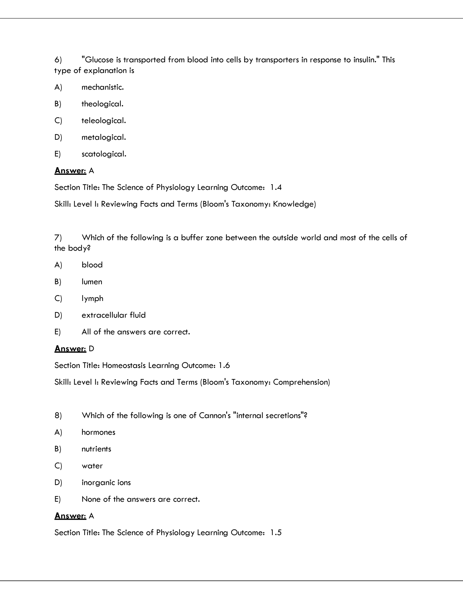 Test Bank for Human Physiology 8th Edition | PDF